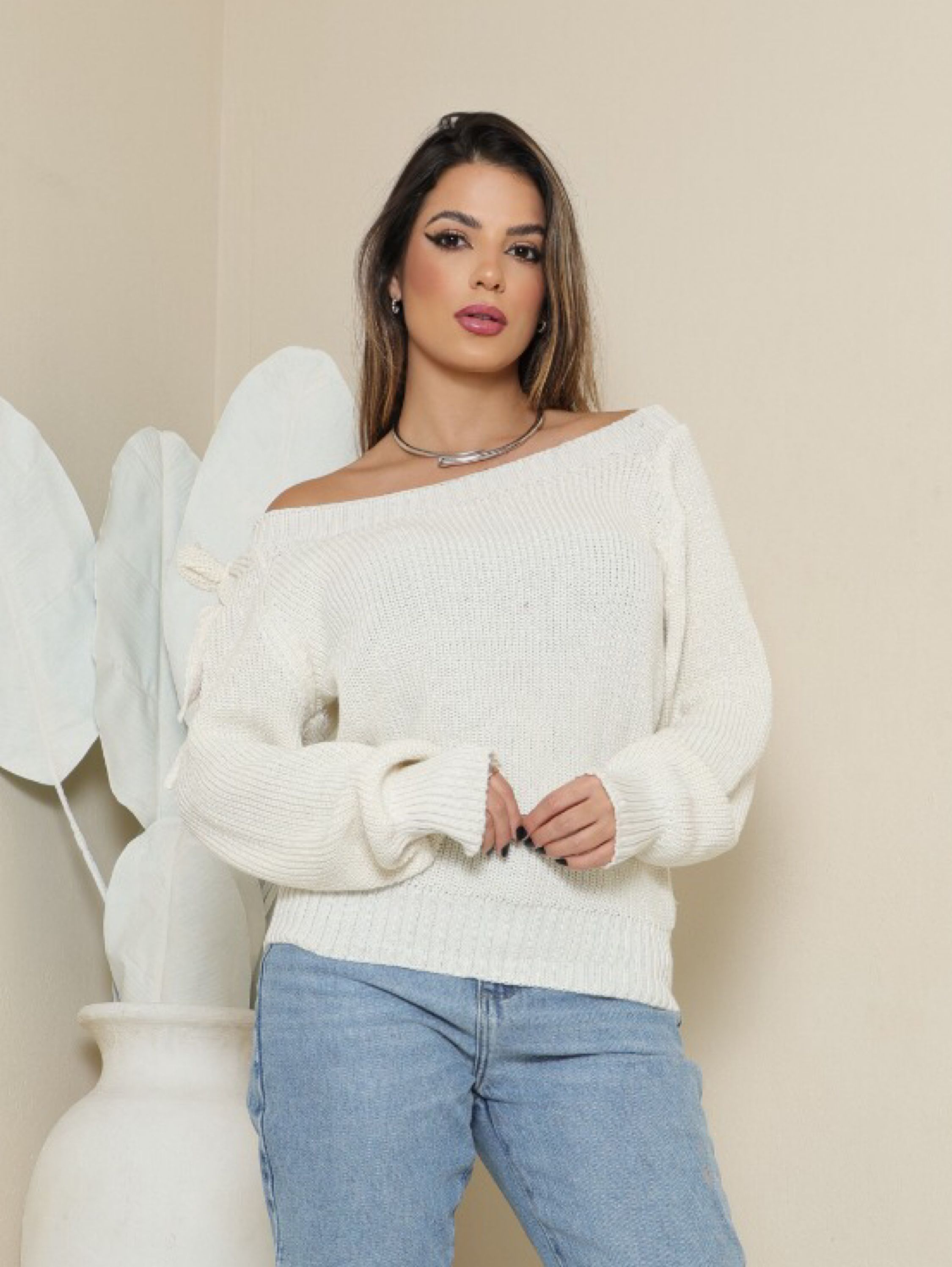 A blusa feminina tricot manga longa com laço no ombro da Delf Modas Tricot é a escolha perfeita para quem busca elegância e conforto durante as temporadas mais frias. Com um modelo casual e chique, ela se adapta facilmente a diversas ocasiões, permitindo que você compõe looks deslumbrantes sem esforço. Feita em poliéster, essa blusa apresenta um caimento reto que valoriza a silhueta feminina, proporcionando uma sensação de aconchego sem abrir mão do estilo. As mangas longas oferecem proteção contra o frio, enquanto o detalhe do laço no ombro confere um toque especial e diferenciado à peça. Ideal para ser usada em eventos sociais, passeios ou mesmo no dia a dia, essa blusa é uma adição versátil ao seu guarda-roupa de outono/inverno. Combine-a com uma saia midi ou jeans para um look moderno e arrojado, ou use-a como a peça-chave para um conjunto de trabalho elegante. Descubra como essa blusa pode transformar seu estilo, proporcionando bem-estar e sofisticação a cada uso. Invista em uma peça que une beleza e praticidade, tornando cada dia mais encantador. Tamanho único veste 38 ao 44 RECOMENDAÇÃO DE USO: * Usar sabão neutro. * Secar na sombra. * Lavar a mão
