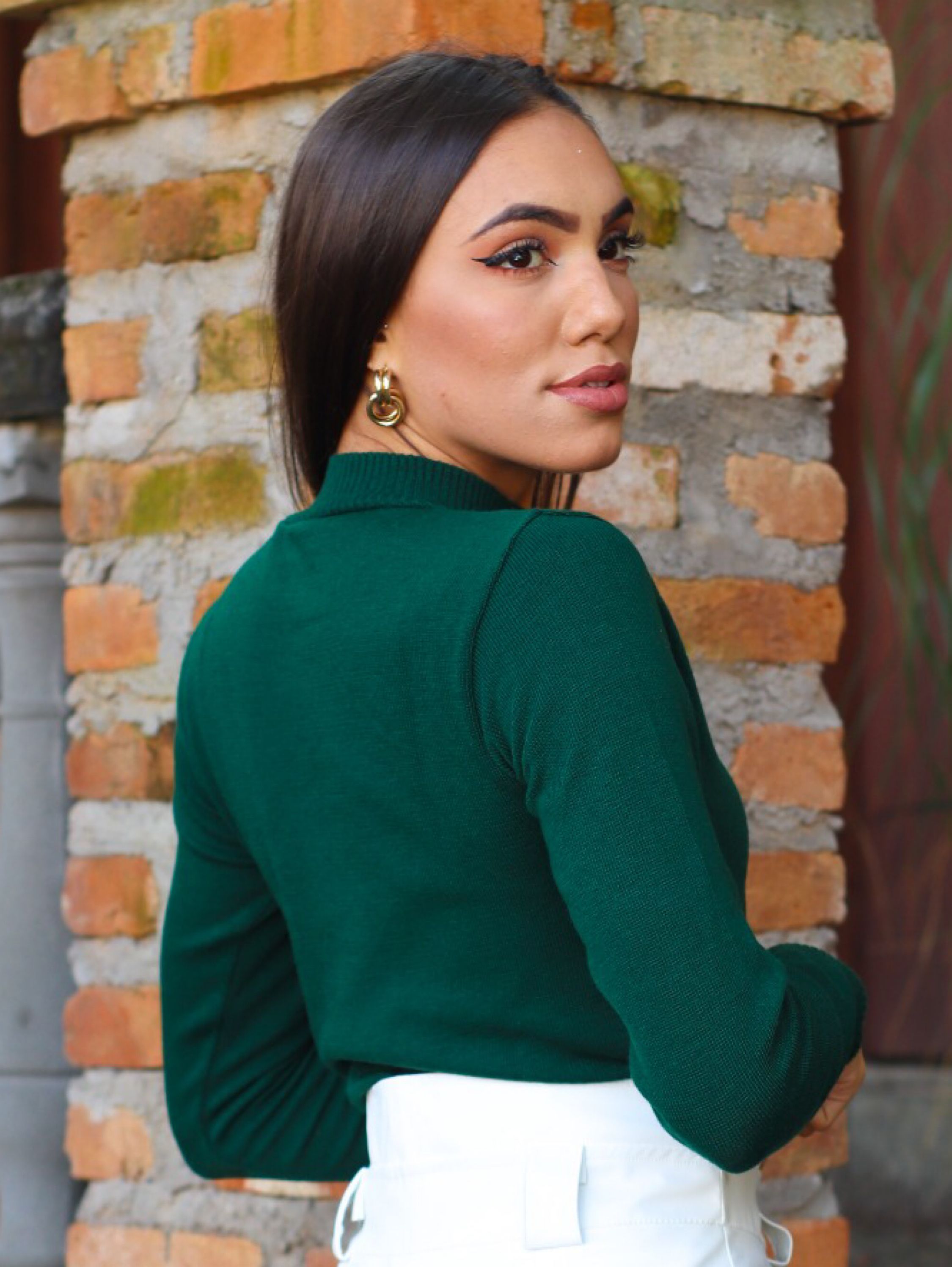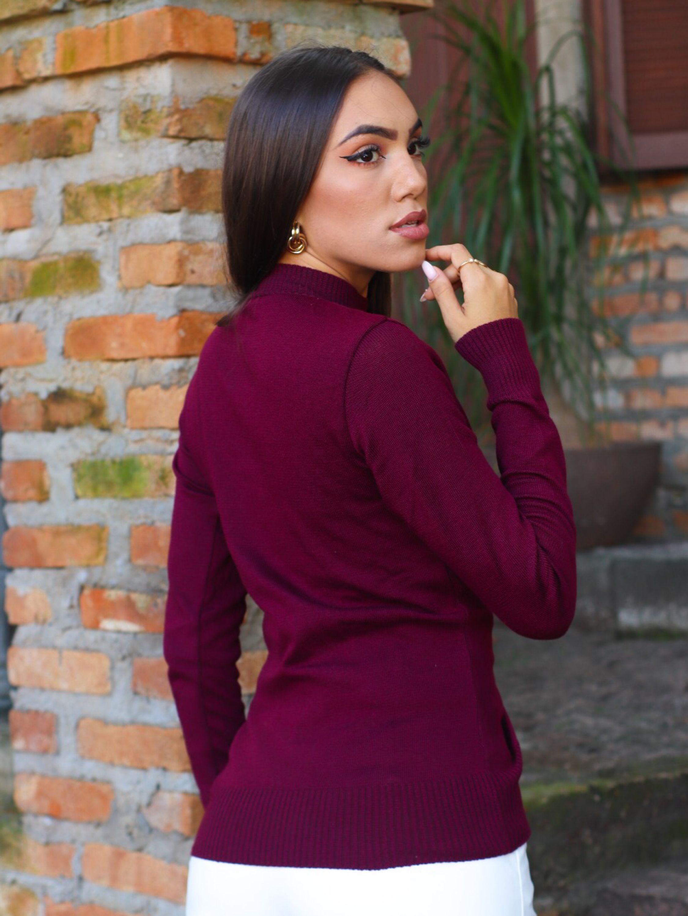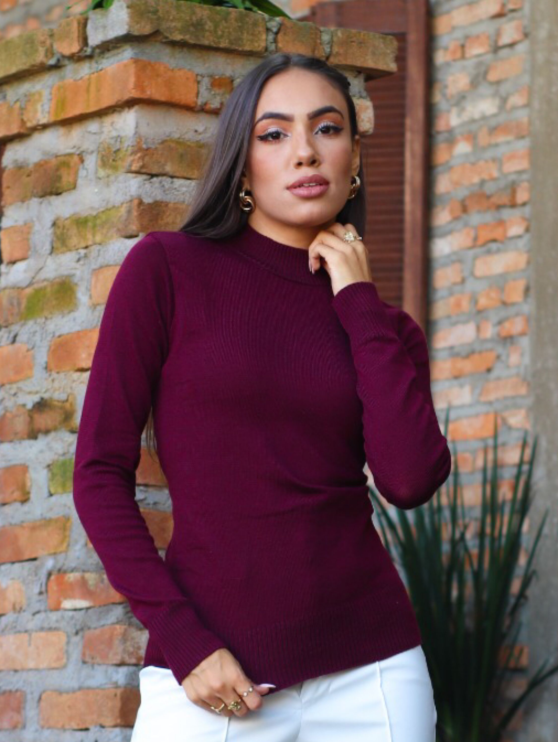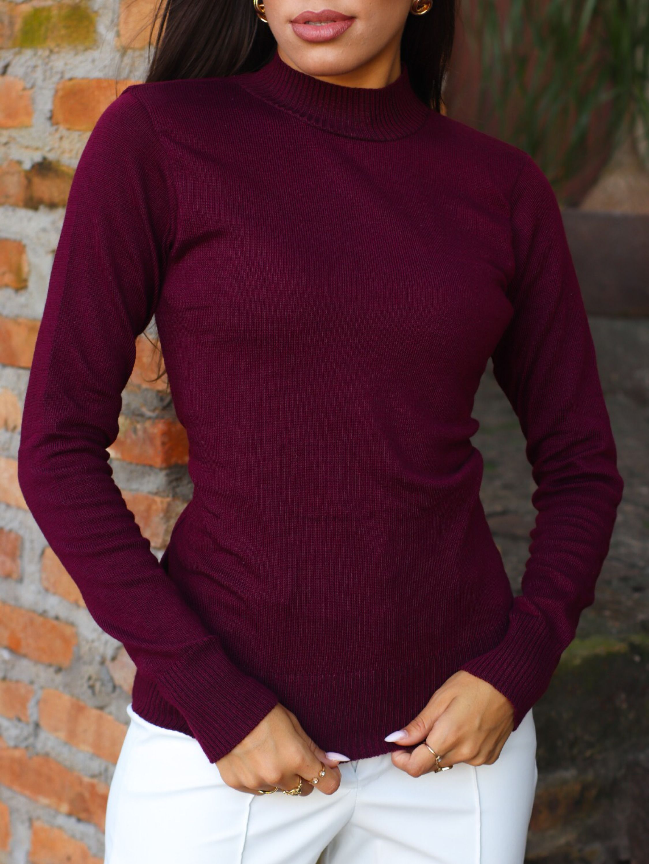 Blusa Feminino Tricot Elastano Elegante Manga Longa Inverno