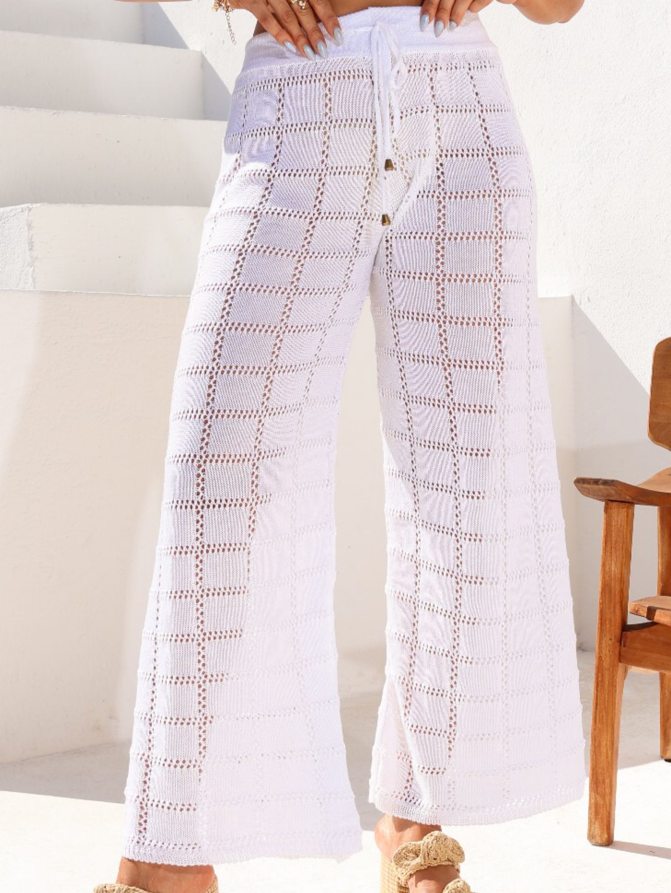 Calça Saida De Praia Feminino Tricot Verão Ajuste Na Cintura
