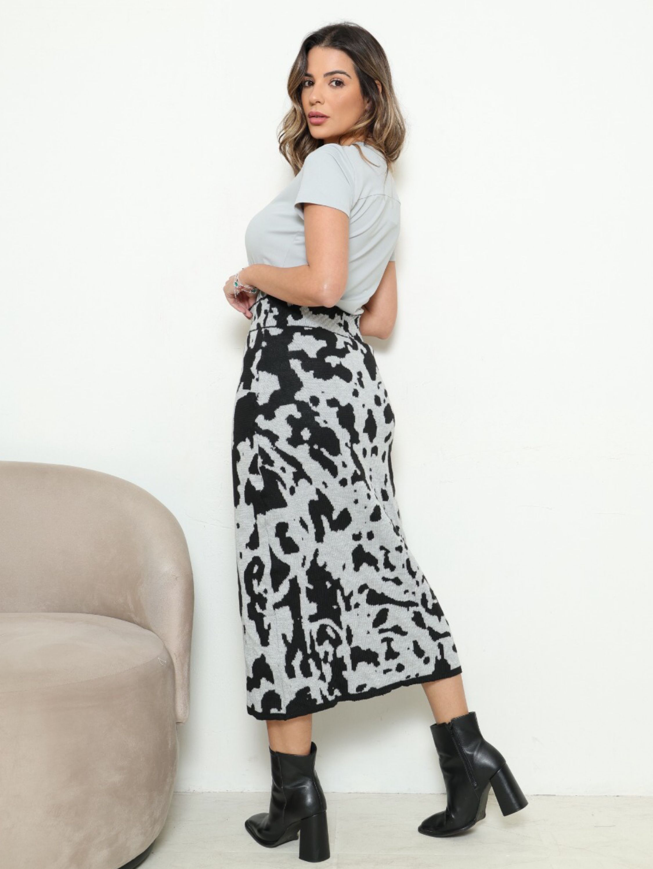 Tamanho único veste 38 ao 44 RECOMENDAÇÃO DE USO: * Usar sabão neutro. * Secar na sombra. * Lavar a mão A Saia Midi Tricot Cow Print Feminino da marca Delf Modas Tricot é a peça ideal para quem busca estilo e conforto em um só produto. Com seu design midi e estampa de vaca, ela traz um toque moderno e arrojado ao guarda-roupa feminino, ideal para diversas ocasiões. Confeccionada em tricot, a saia apresenta um caimento perfeito que valoriza a silhueta, enquanto a cintura média e elástica proporciona conforto e praticidade ao vestir. A combinação de tecido macio e durável garante que você se sinta bem o dia todo. Perfeita para compor looks casuais ou mais sofisticados, essa saia pode ser facilmente combinada com diferentes blusas e acessórios. Seja para um passeio, um dia de trabalho ou uma saída à noite, a Saia Midi Tricot Cow Print se adapta a todas as situações. Descubra uma nova forma de se expressar através da moda com esta peça que reflete tendências contemporâneas e garante um visual diferenciado. Experimente a versatilidade da saia midi e surpreenda-se com as inúmeras possibilidades de combinações que ela oferece.