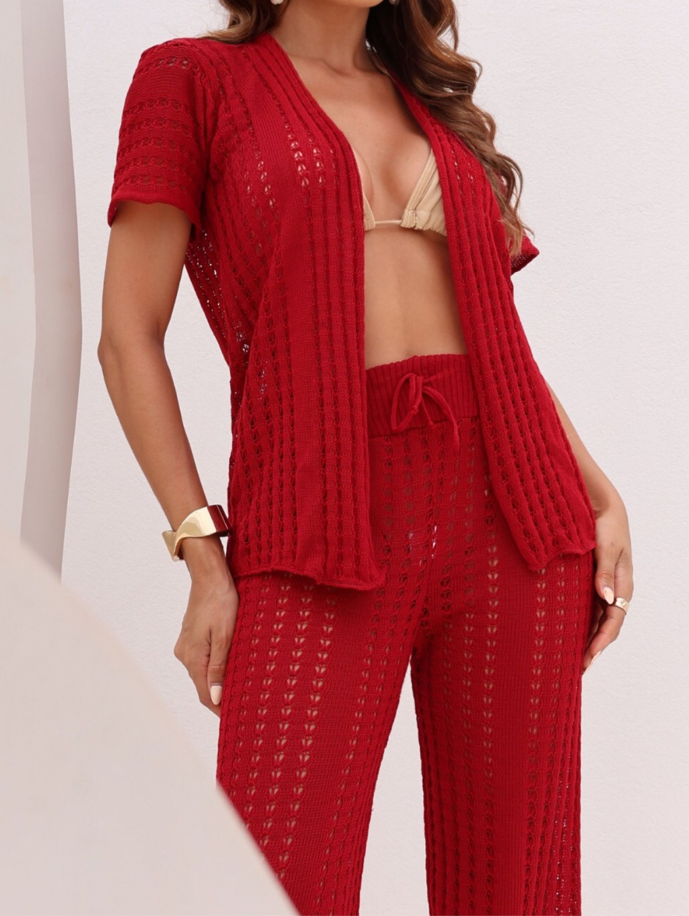 Conjunto Saída de Praia Tricot Calça e Camisa Cordão Cintura