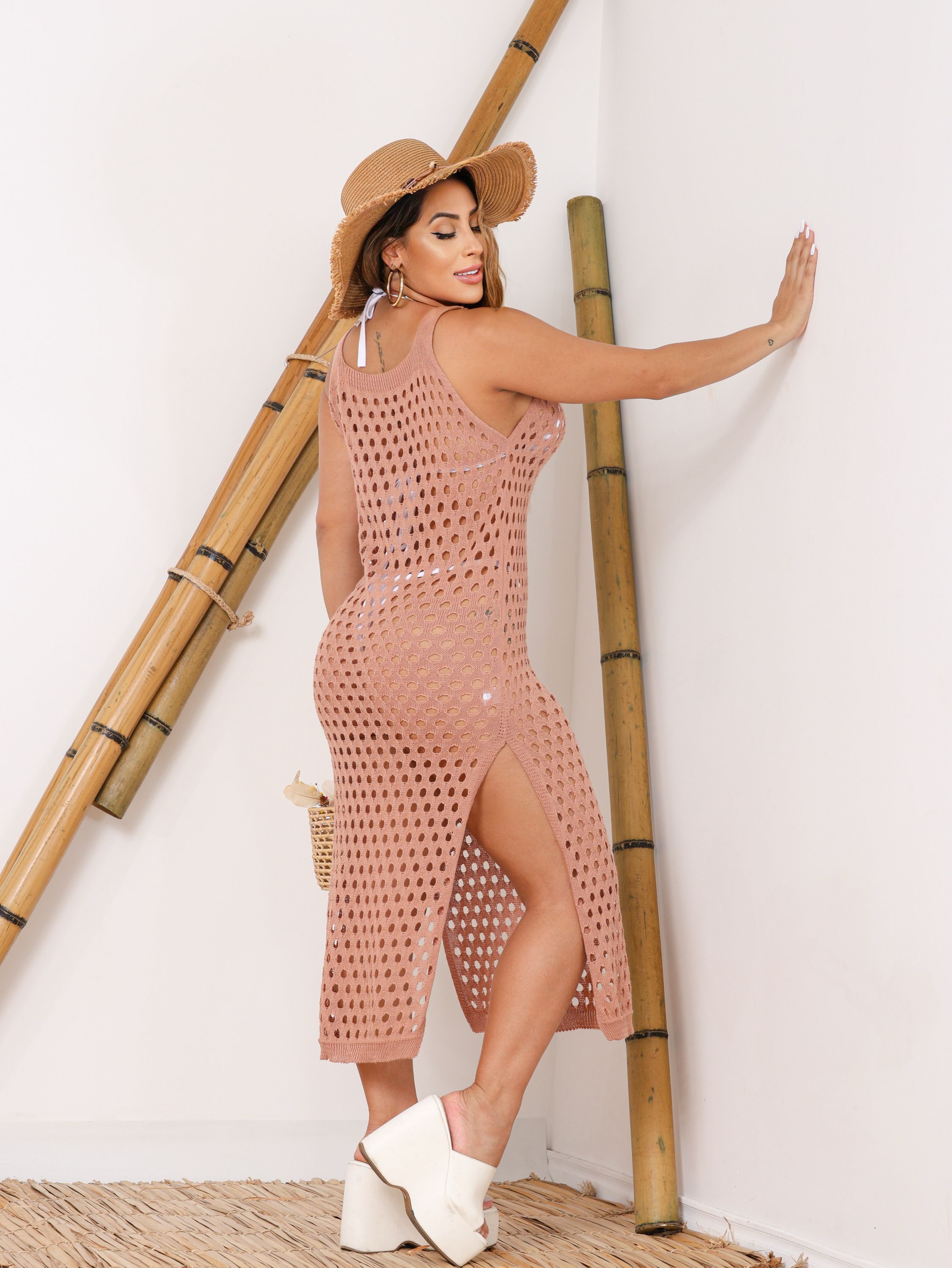 Saída de Praia de Tricot Longa Regata com Fenda Banho