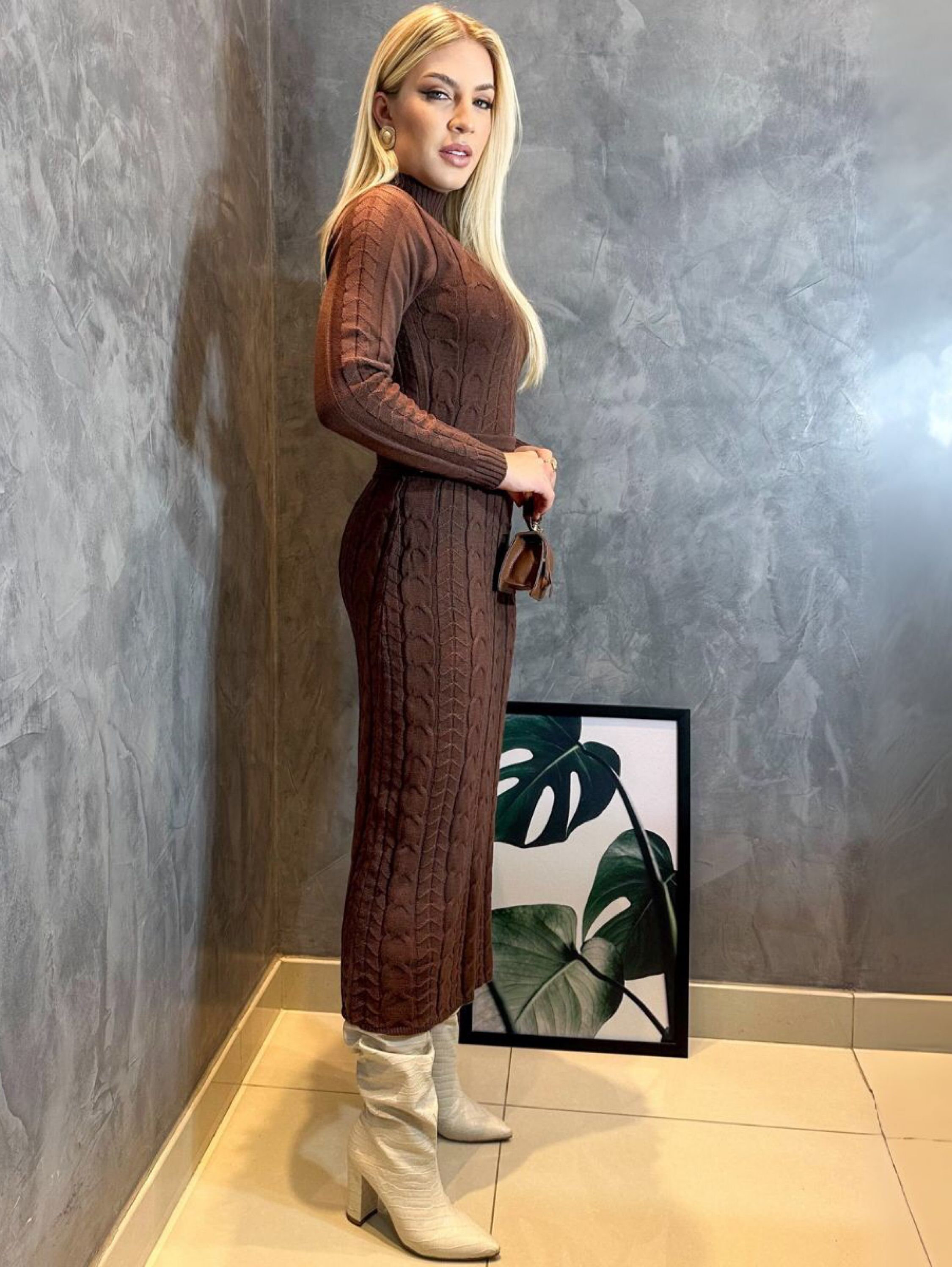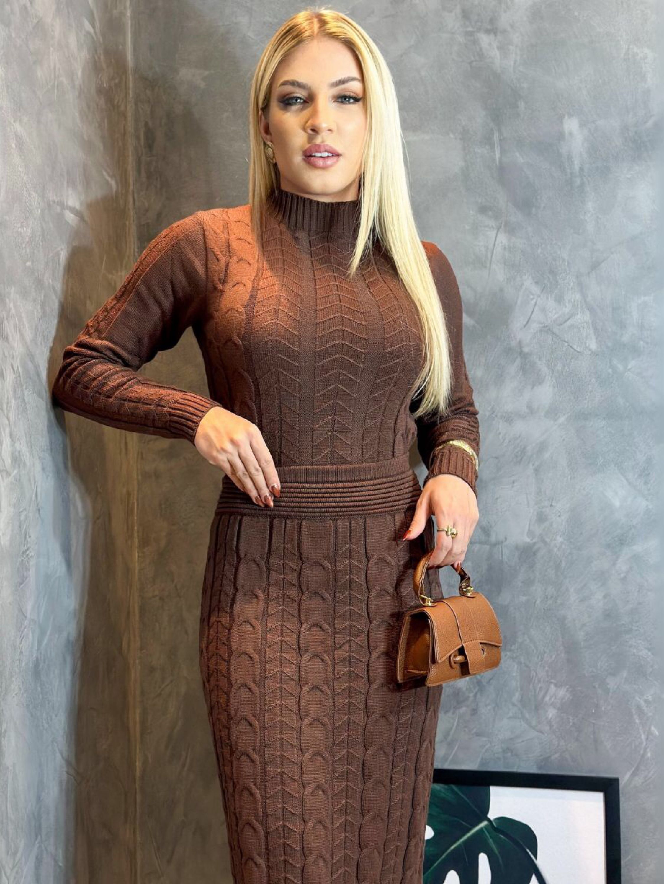 Conjunto Tricô Modal Deolane Cropped Saia Midi Trança Luxo