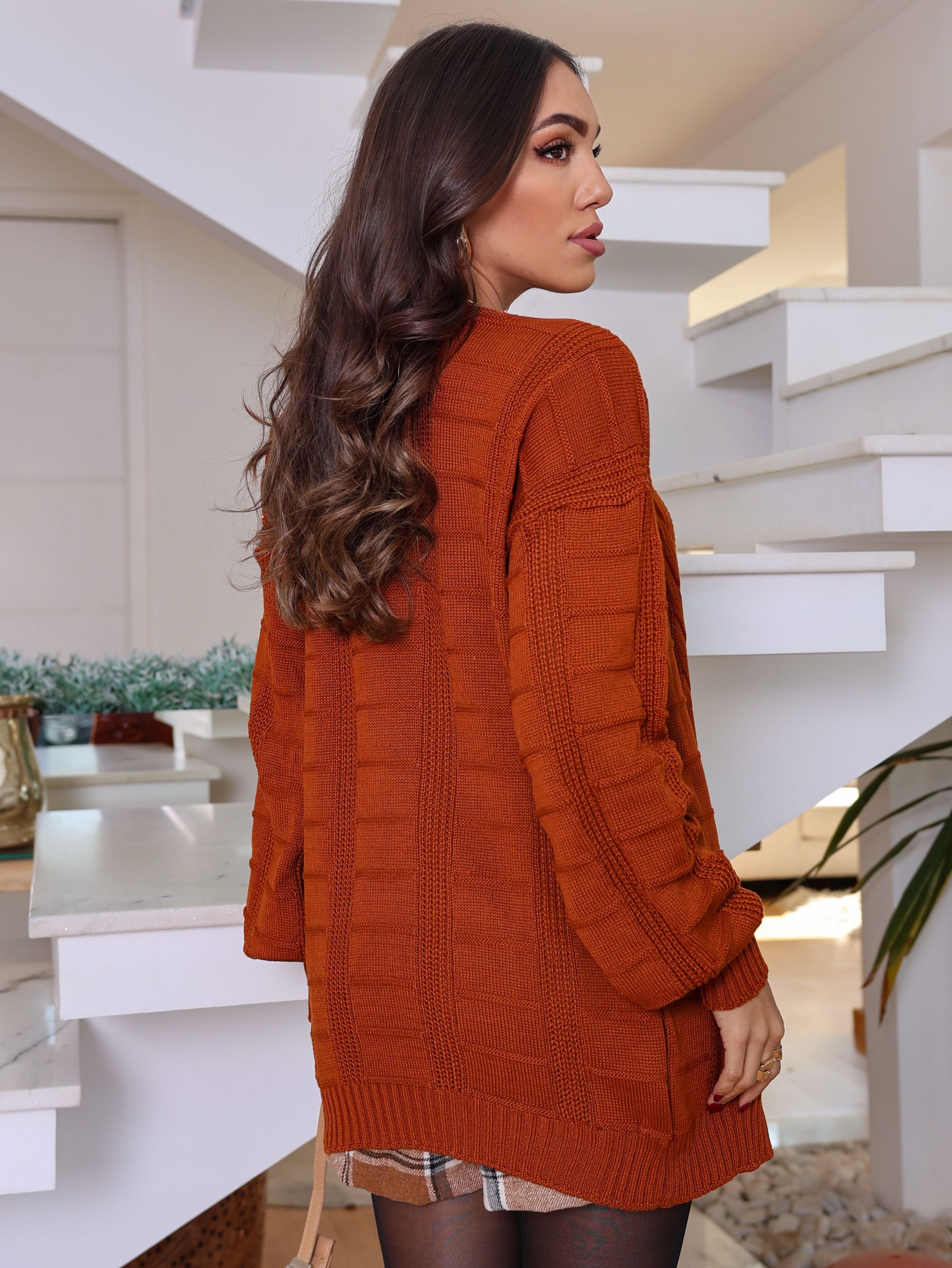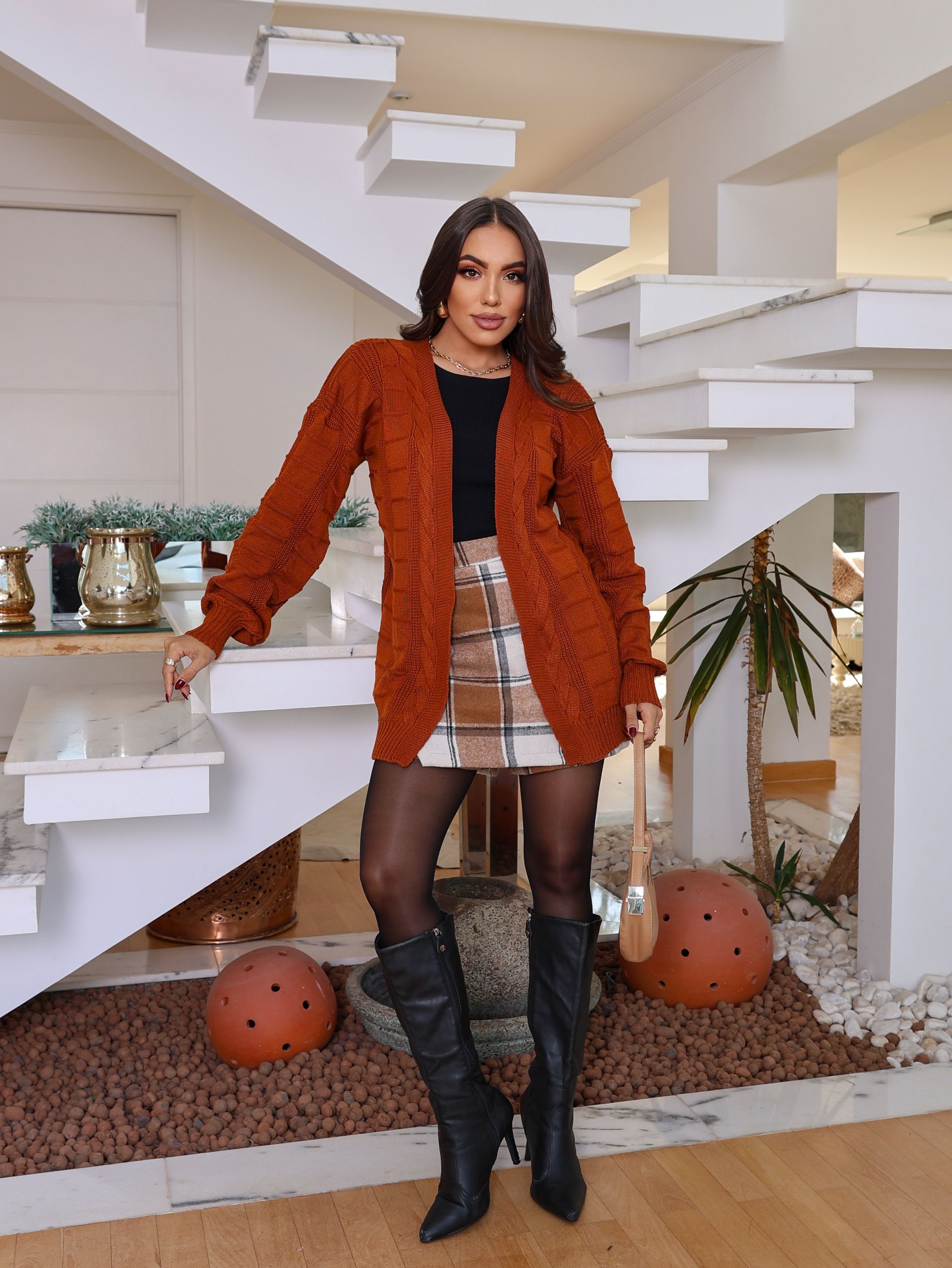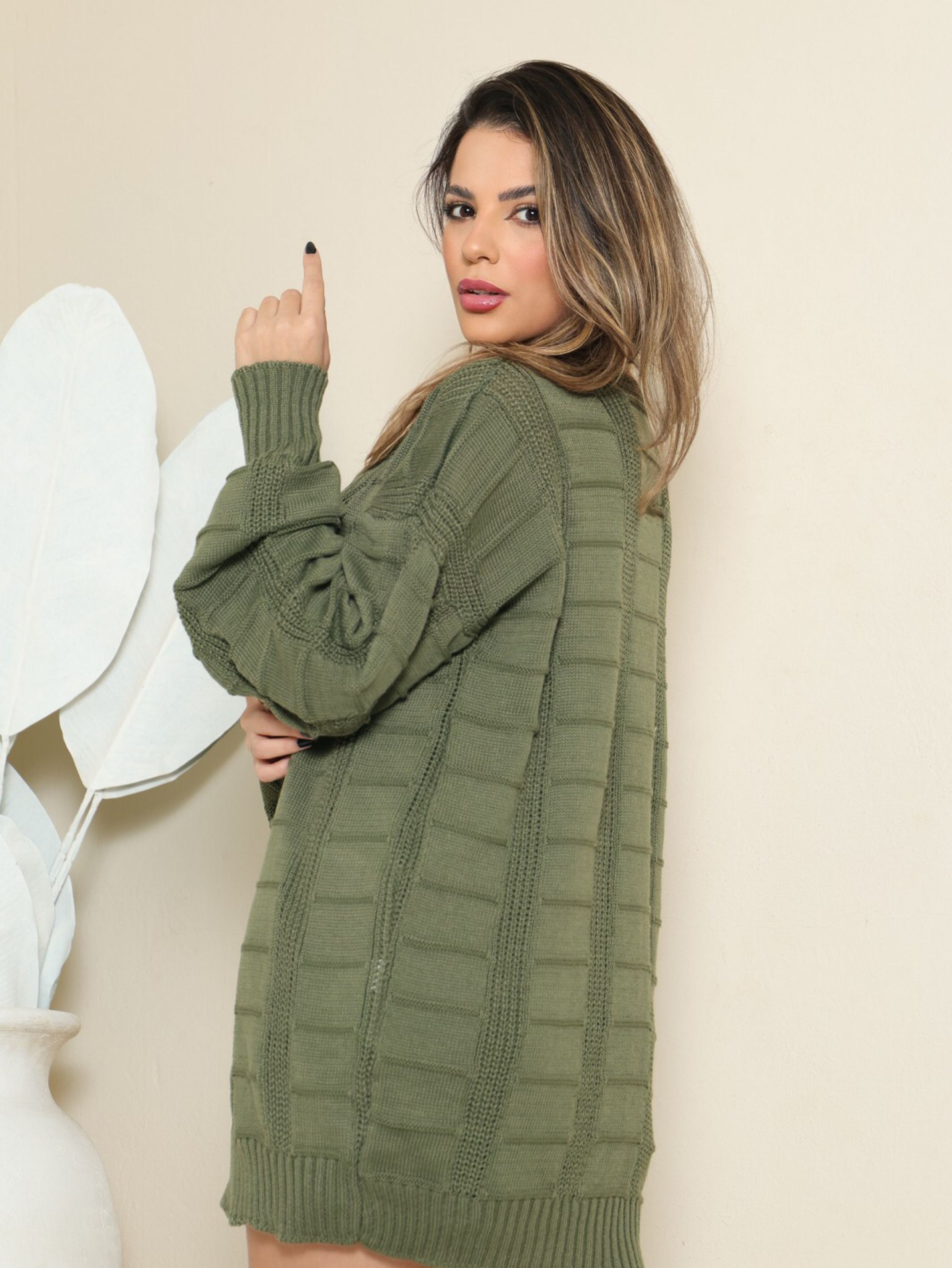 Cardigan Tricot Trança Manga Bufante Moda Feminina
