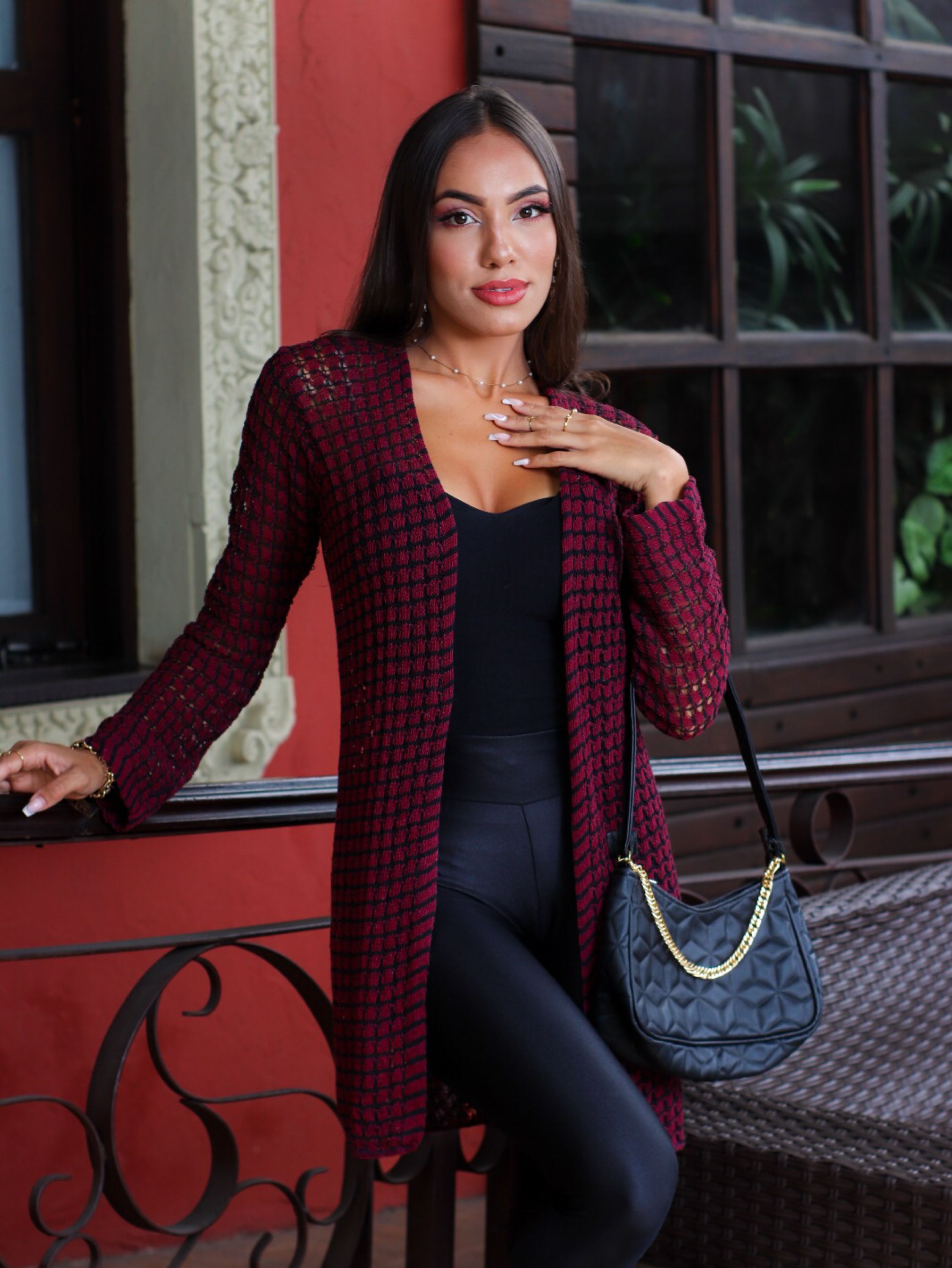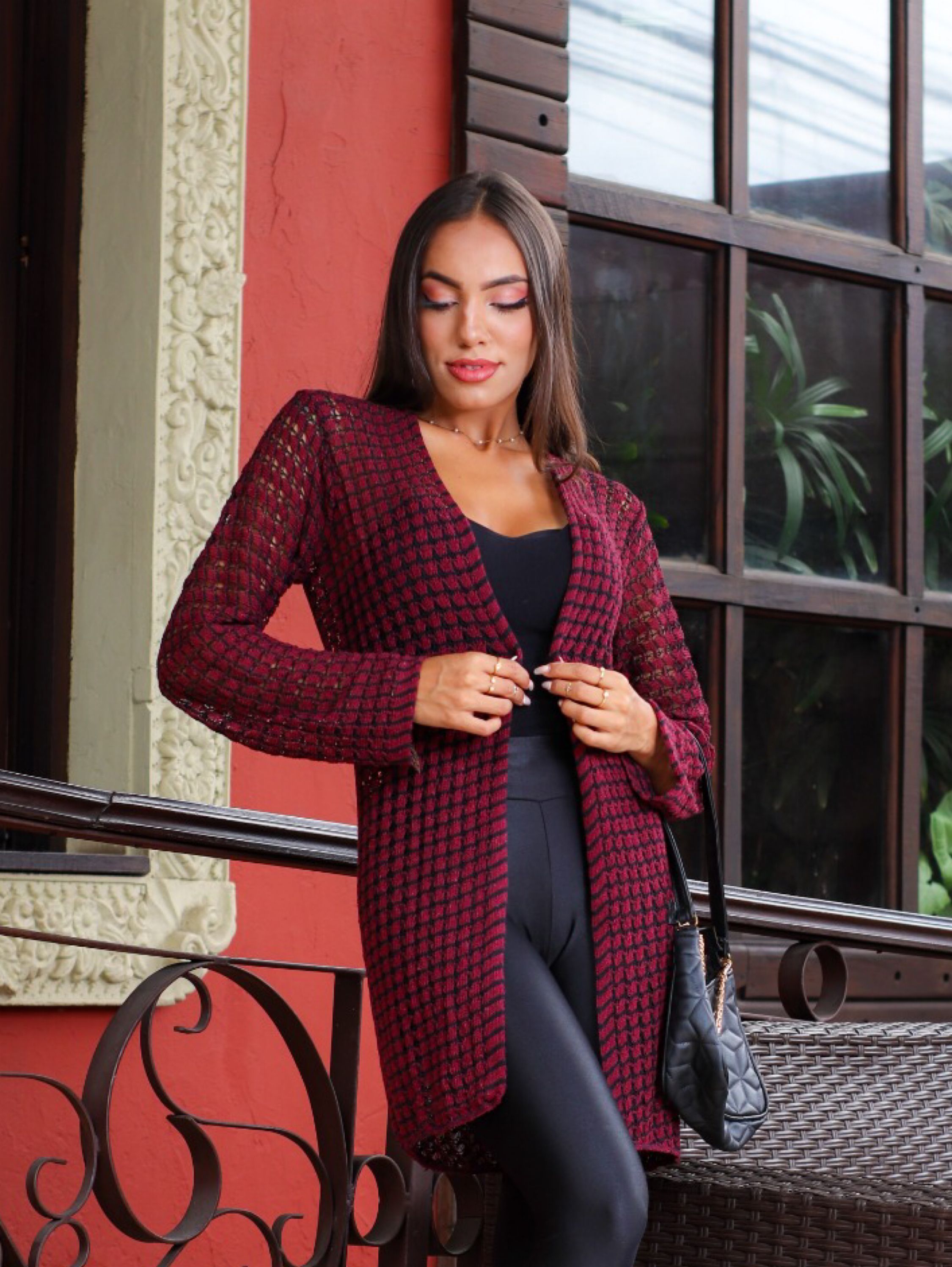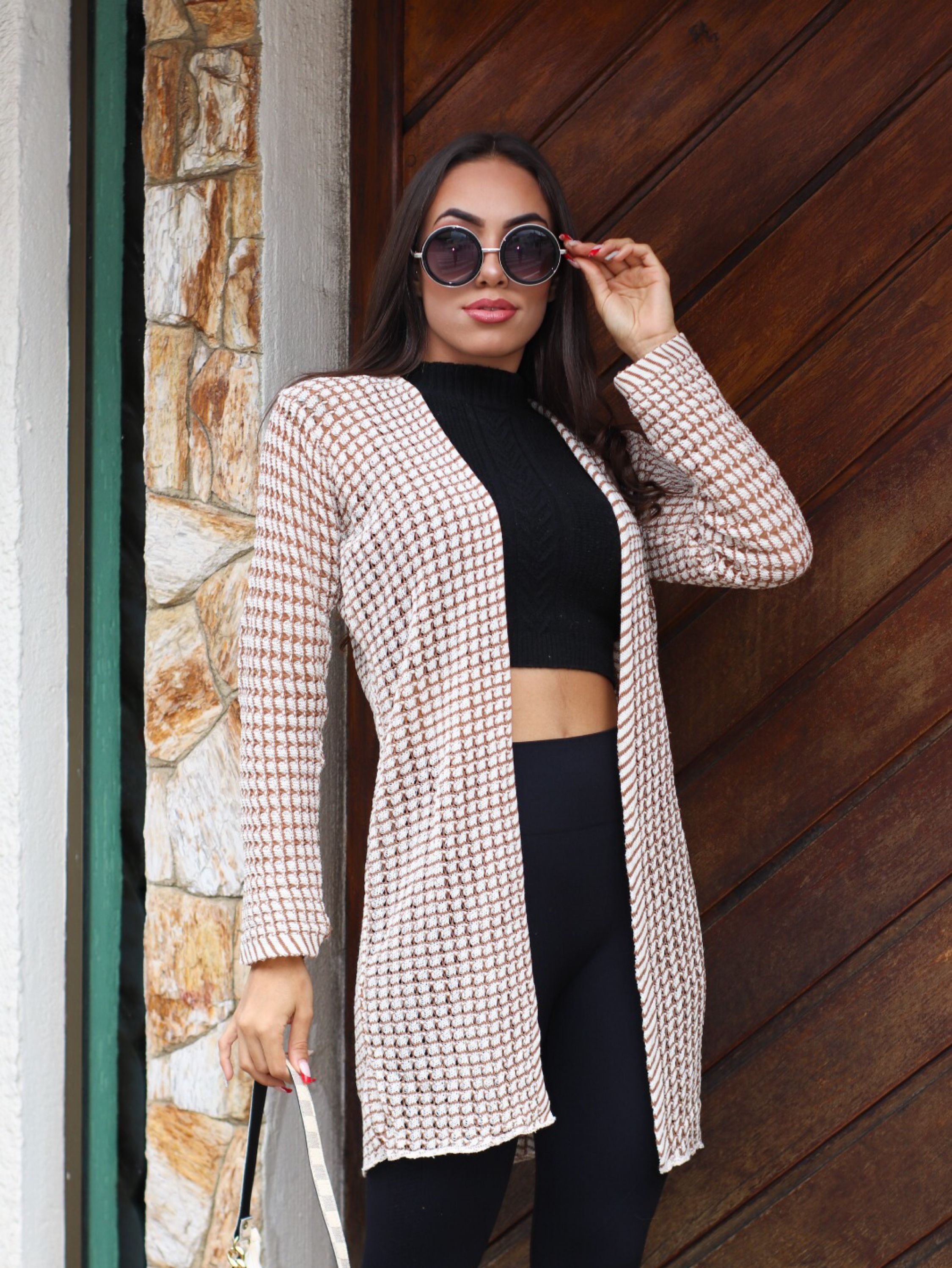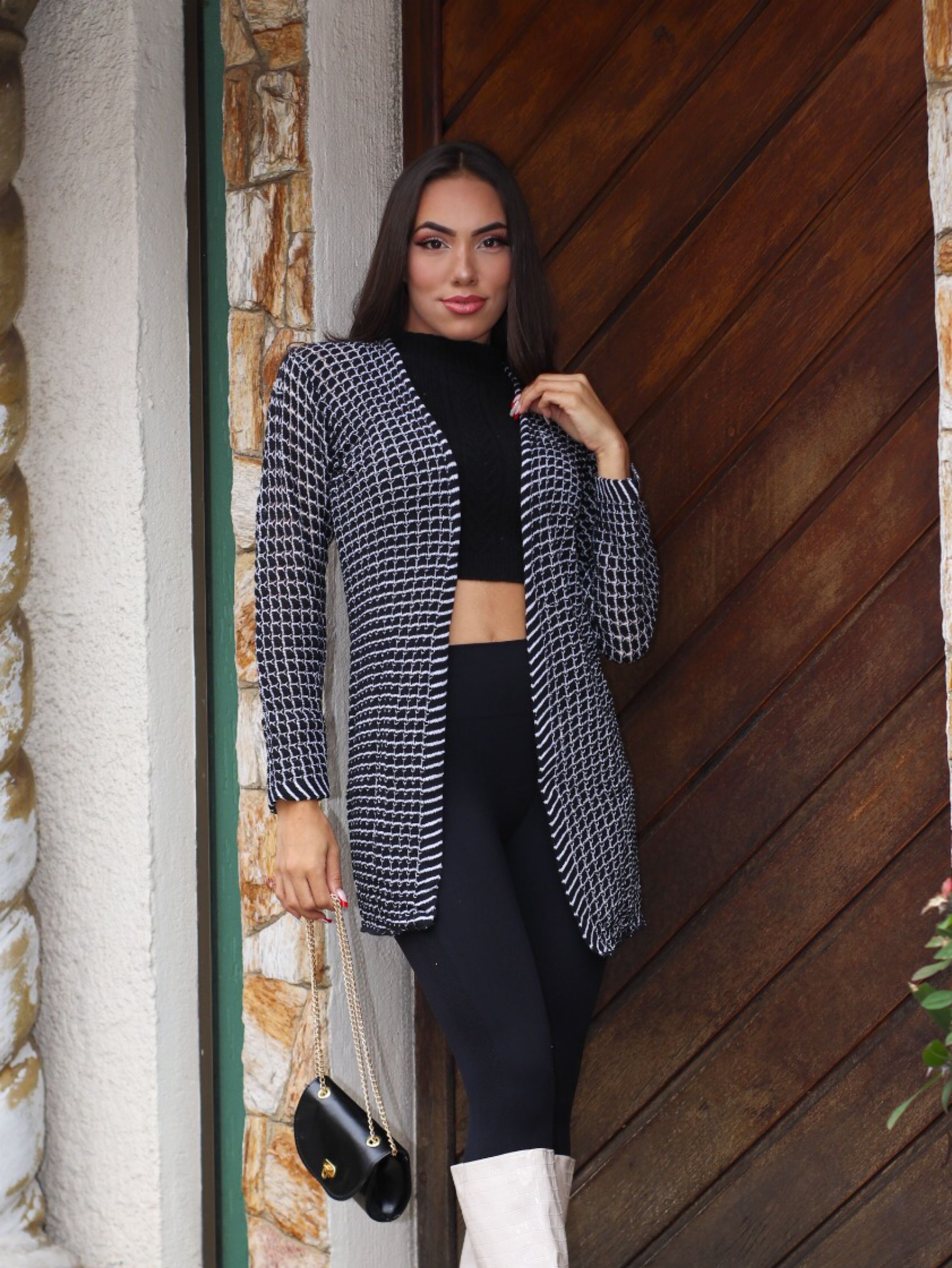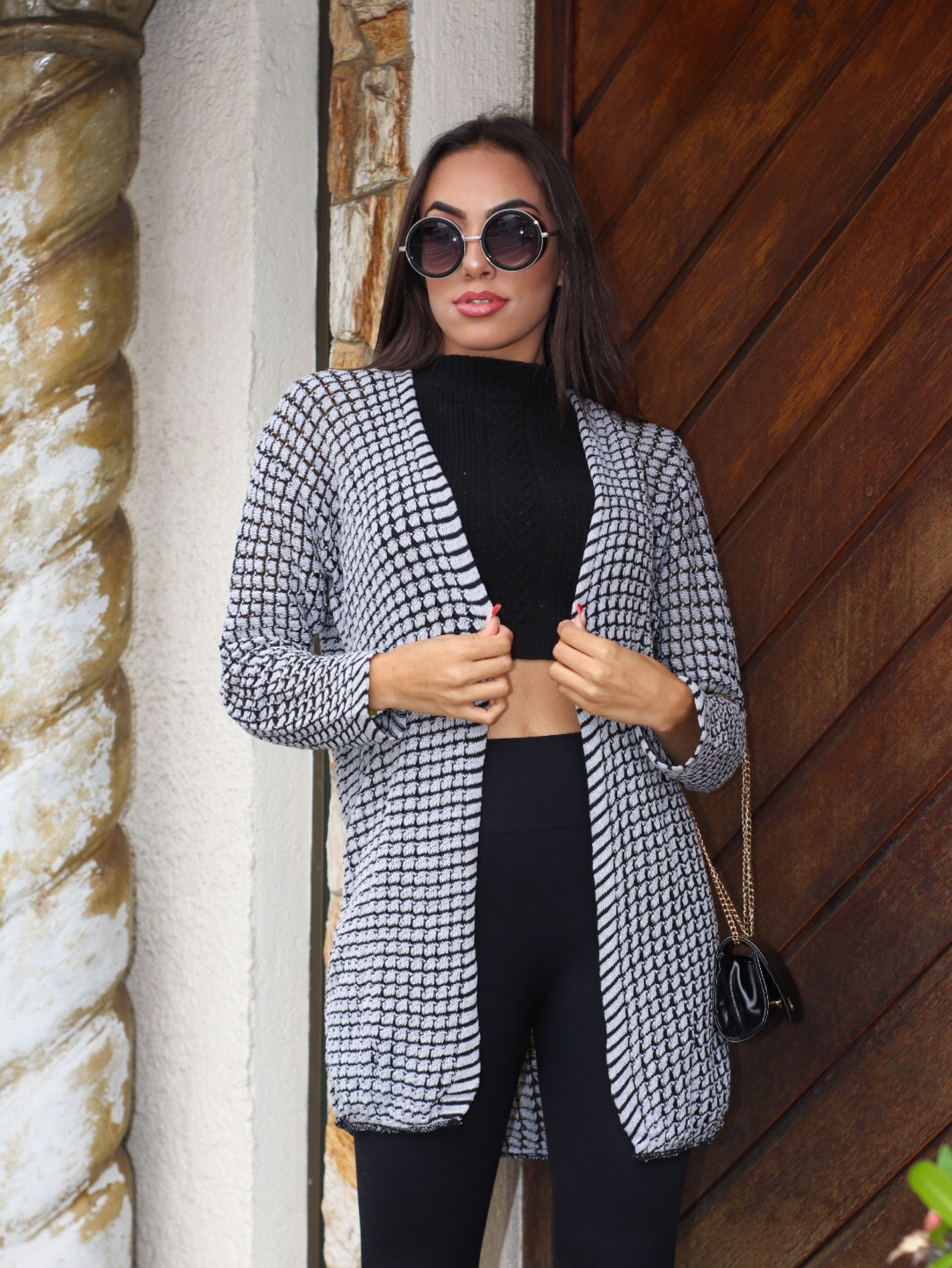 Saída de Praia Cardigan Tricô Quadradinho Manga Longa Tradic