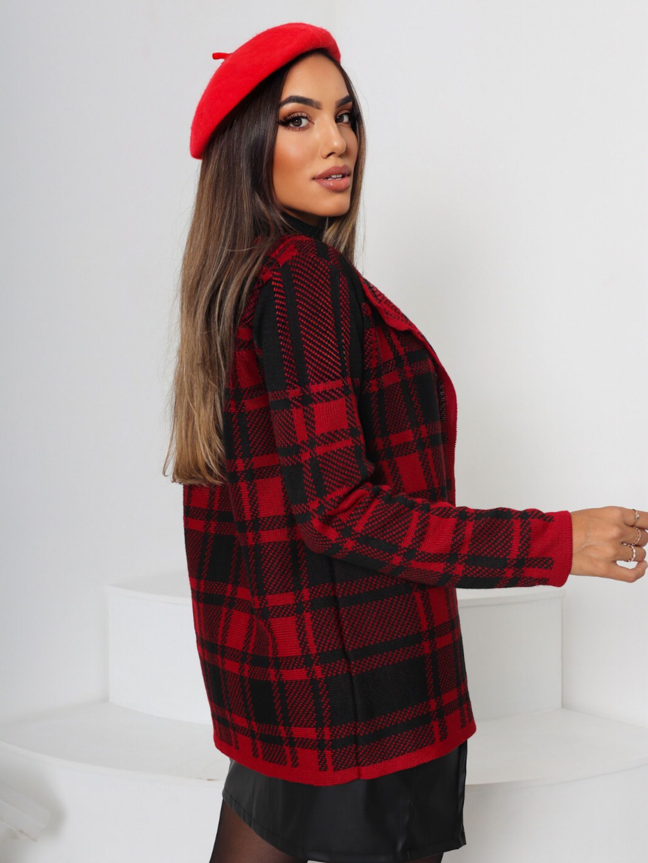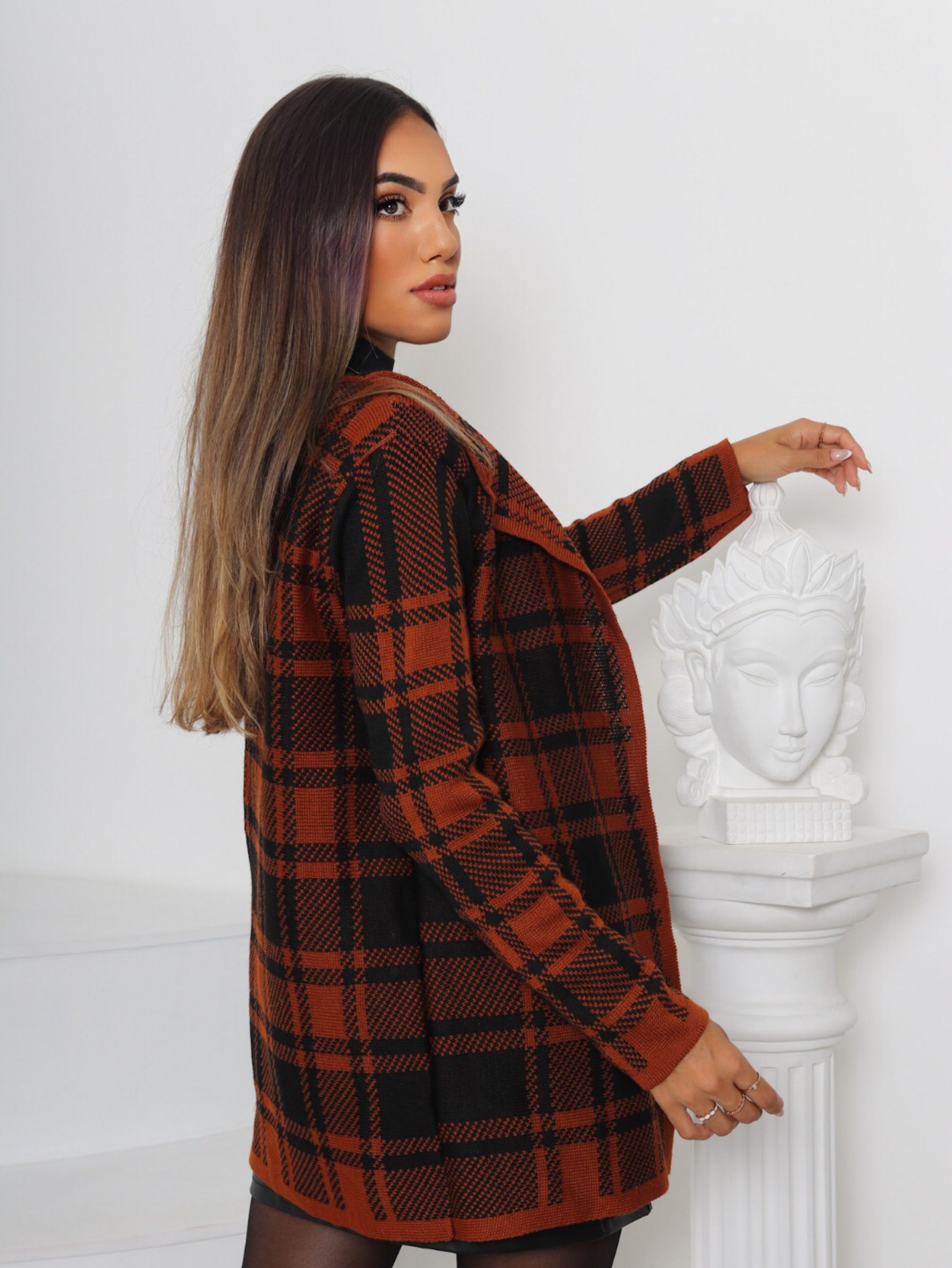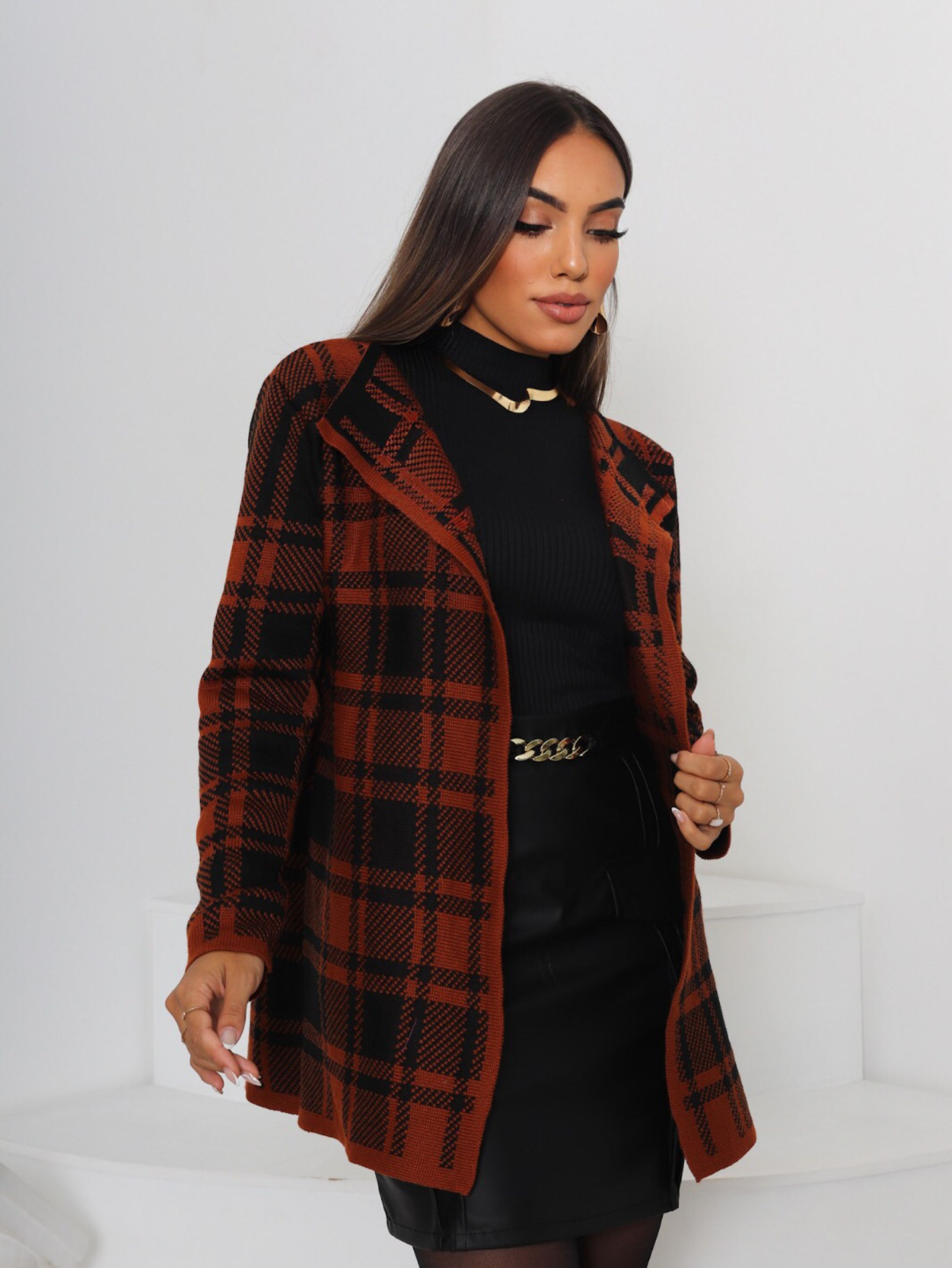 Cardigã Tricô Lorena Xadrez Manga Longa