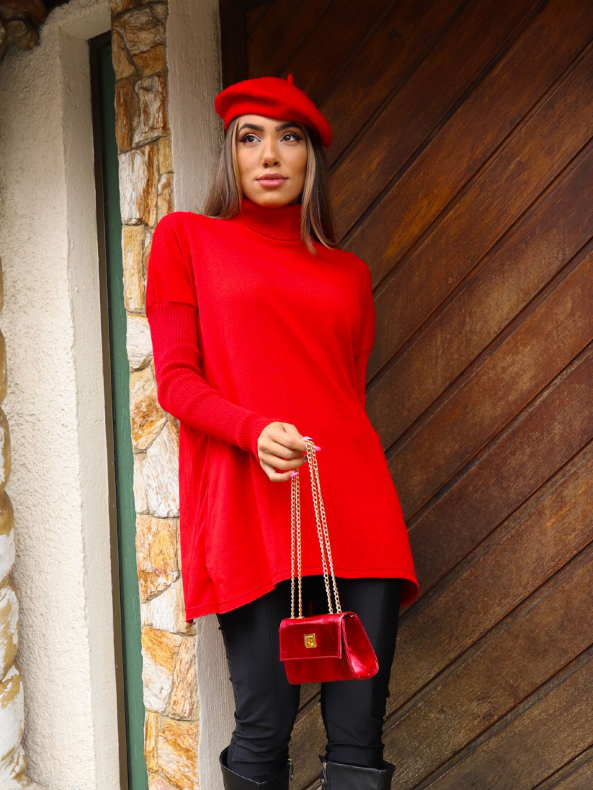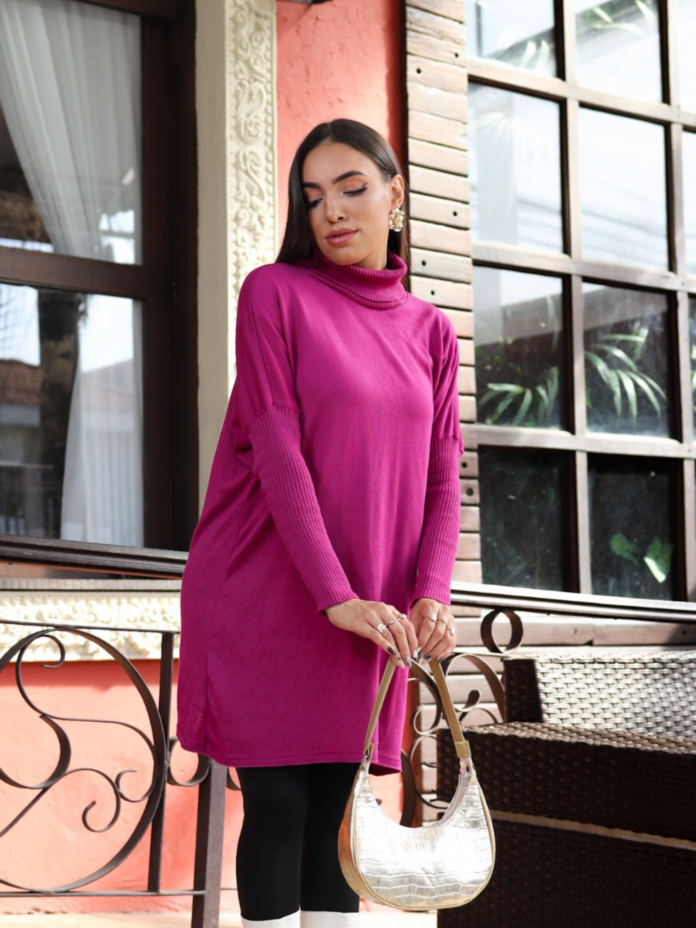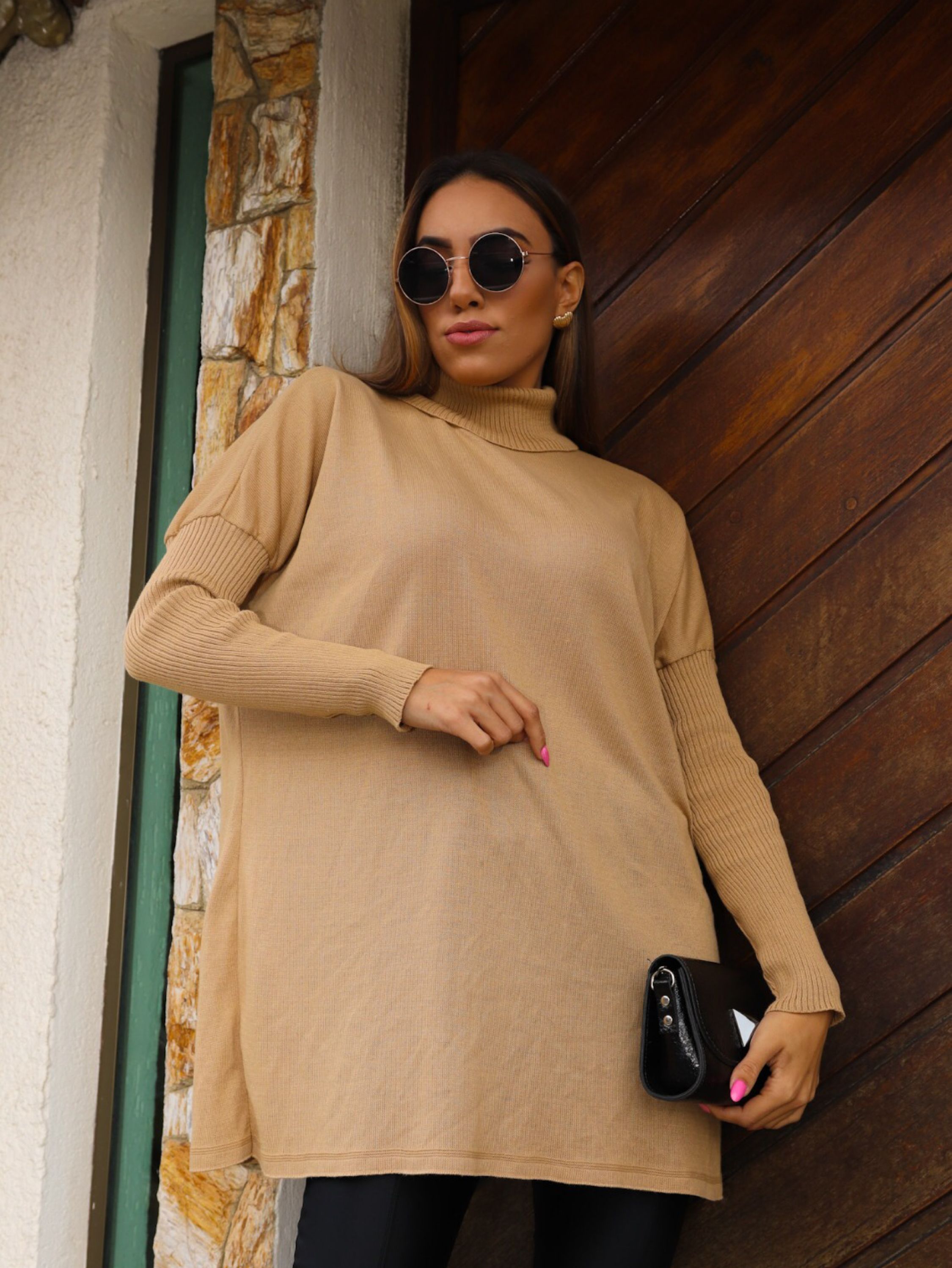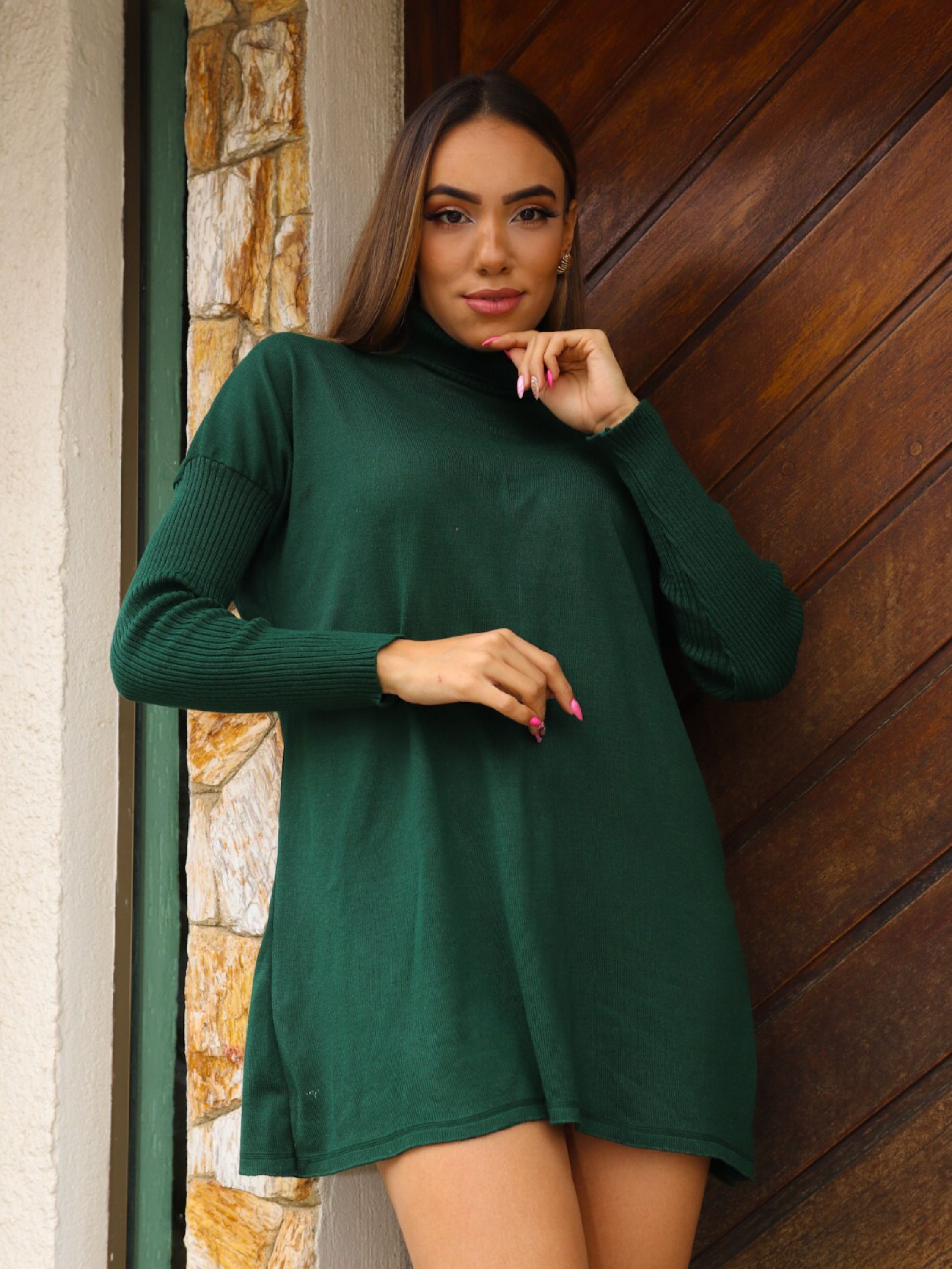 Veste Legging / Vestido de Tricot, com gola Cacharrel e Manga Longa. Tamanho Único (Veste do 38 ao 44)