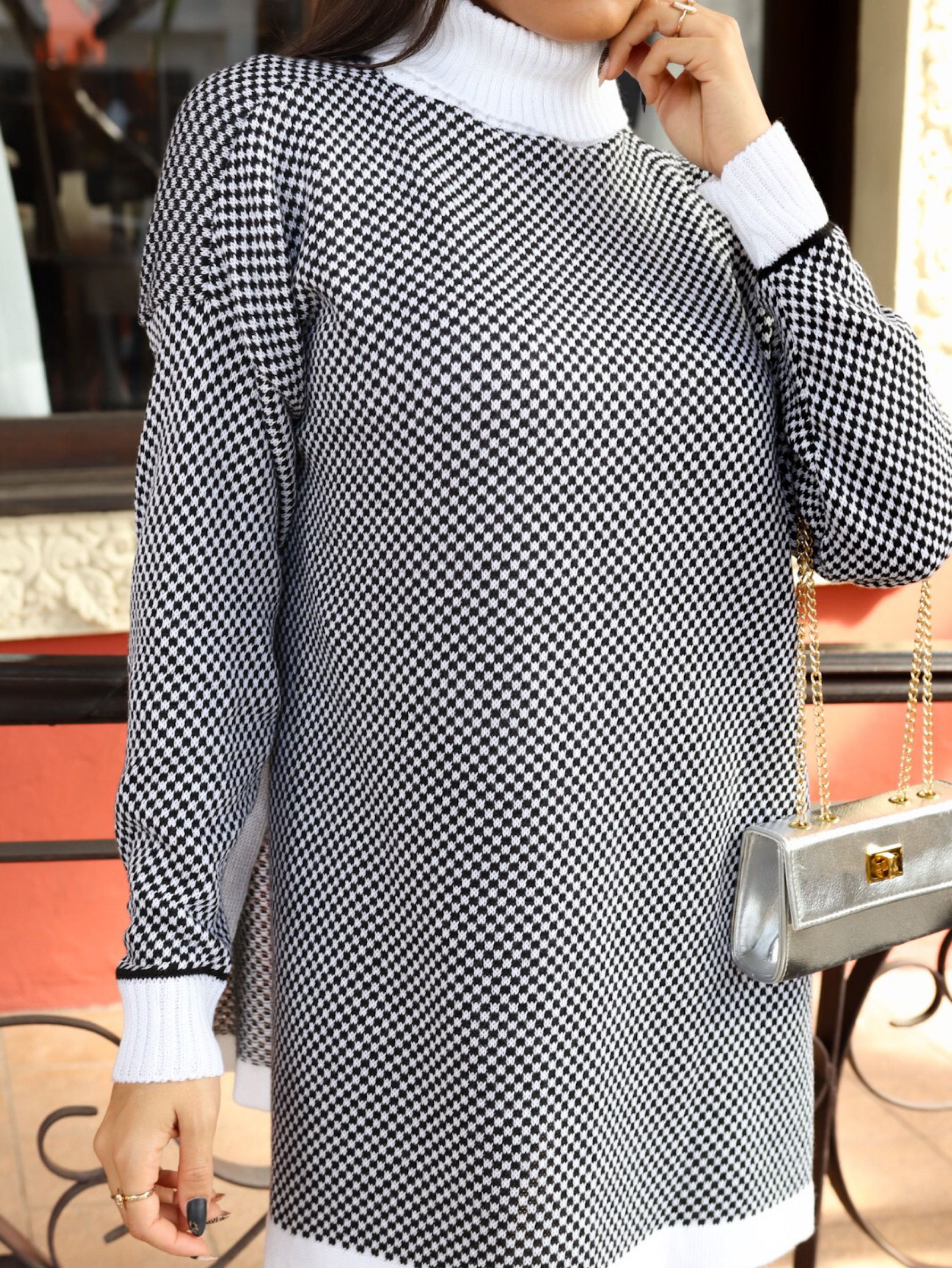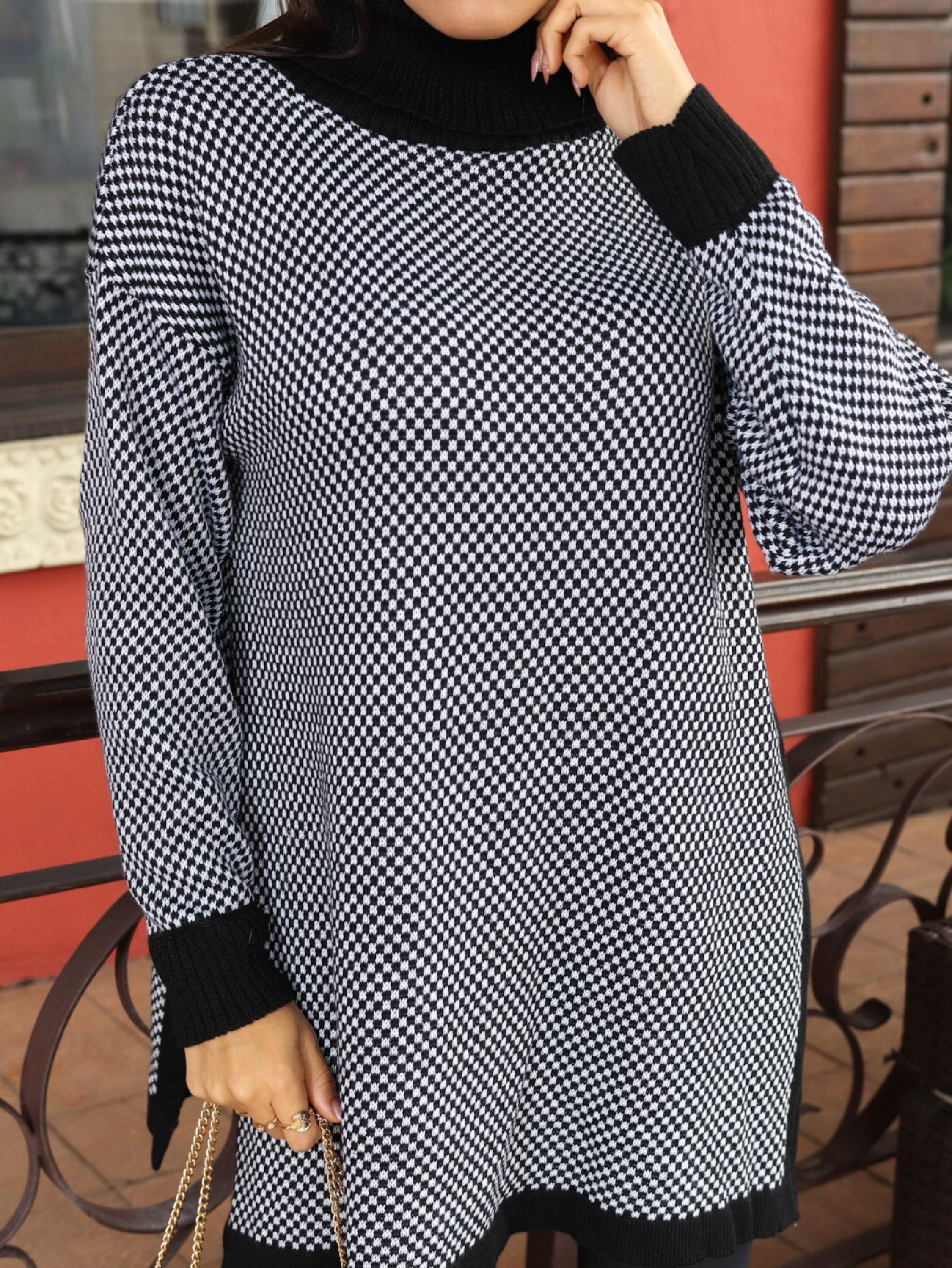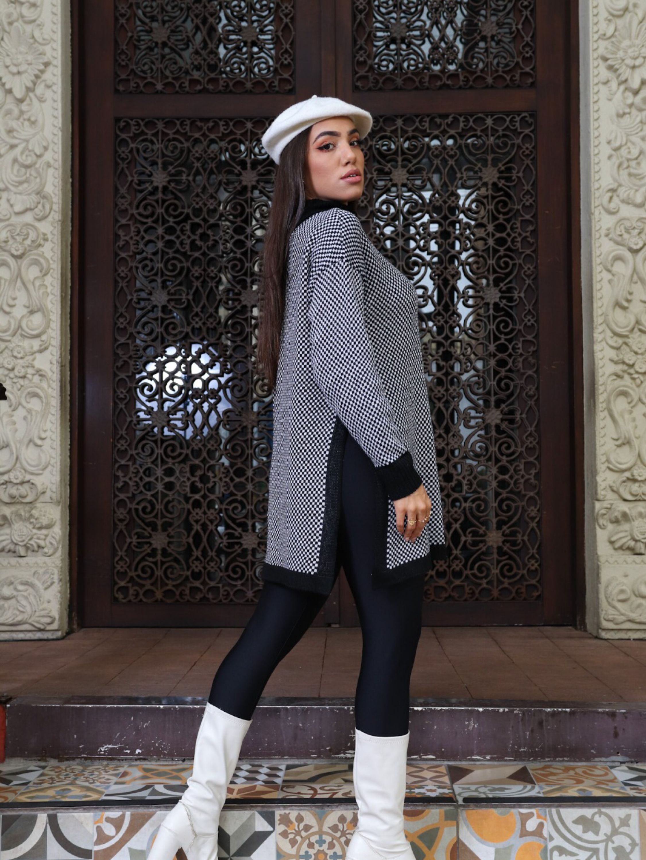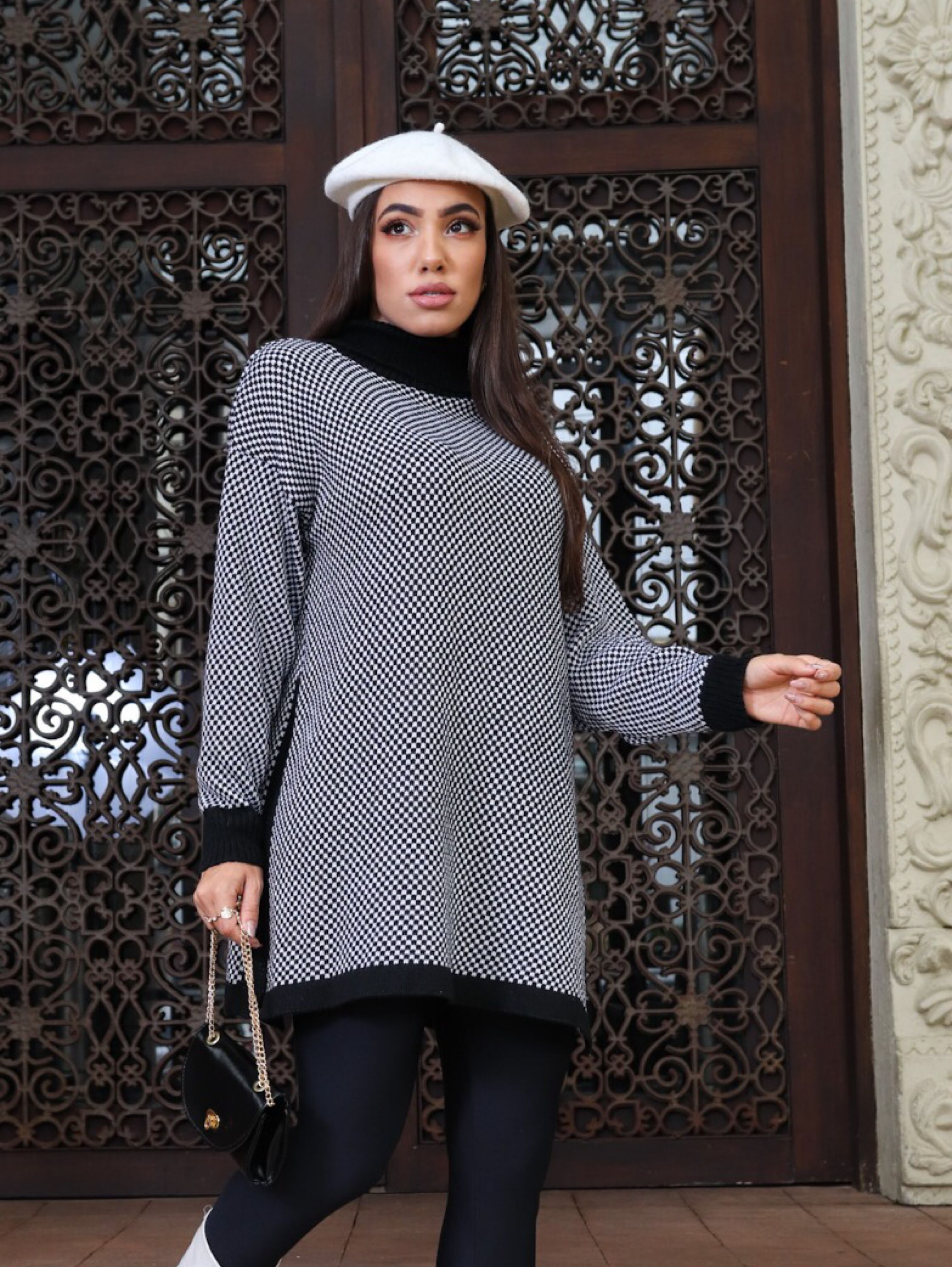 Poncho De Tricot, trama xadrez, gola alta, fenda dos dois lados. Tamanho Único (veste do 38 ao 44)