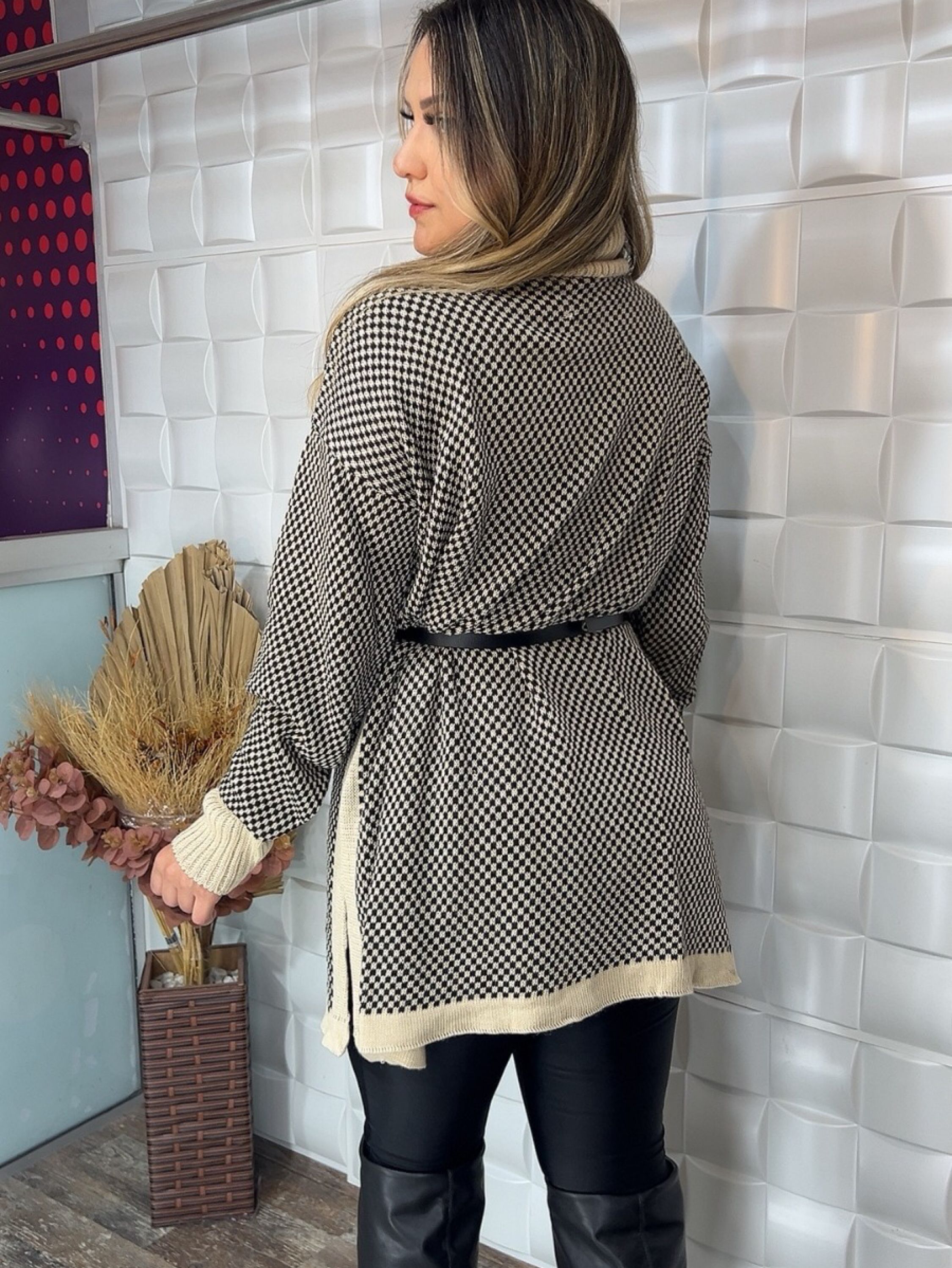 Poncho Xadrez Tricô Cacharrel Manga Longa