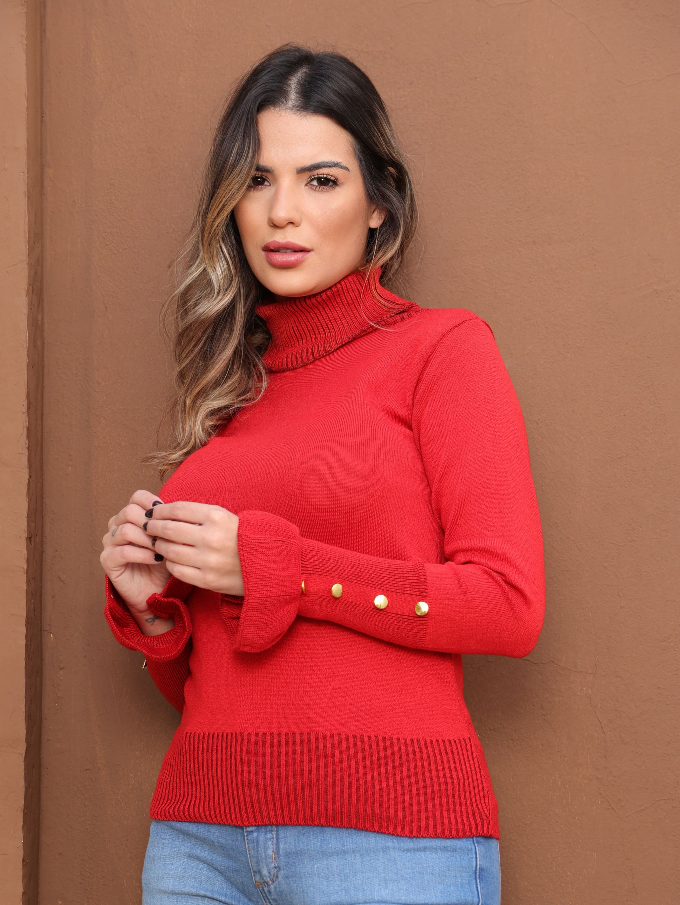 Blusa Tricô Cacharrel Botão Flare Manga Longa