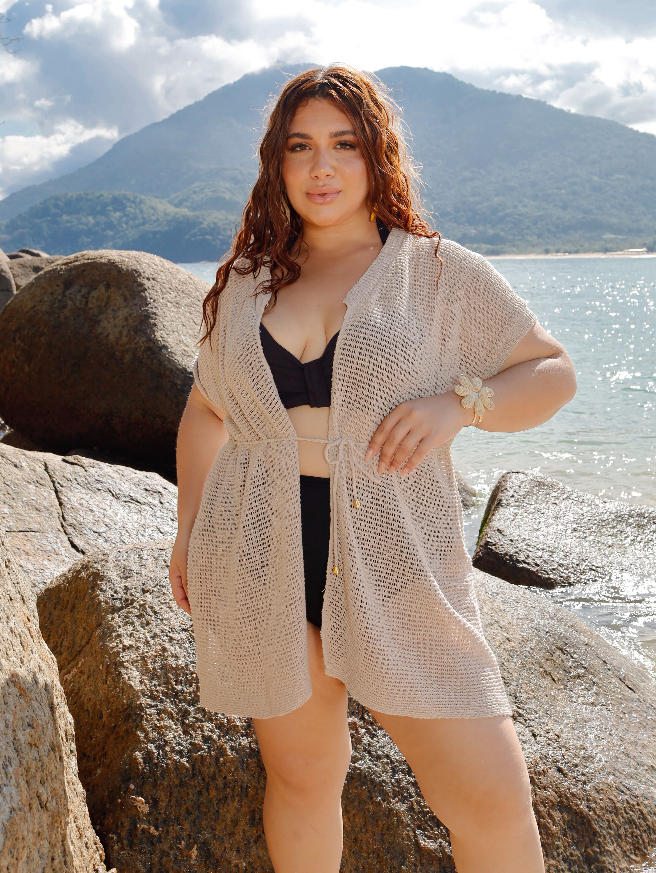 - Descrição: Esta saída de praia foi cuidadosamente projetada para oferecer estilo e conforto às mulheres plus size, proporcionando um visual encantador e adaptável a diferentes formas corporais. Com um design aberto e fluído, é a escolha perfeita para os dias de sol à beira-mar. A presença da cordinha para modelar permite ajustar a peça conforme desejado, proporcionando um caimento personalizado que realça suas curvas de maneira graciosa e elegante. Essa característica não apenas adiciona um toque de estilo à saída, mas também oferece praticidade para adaptar o ajuste conforme sua preferência. - Preço: R$ 15,00 - Variações: PRETO, BRANCA, LARANJA, VERDE TAMANHO ÚNICO PLUS SIZE (48/52)