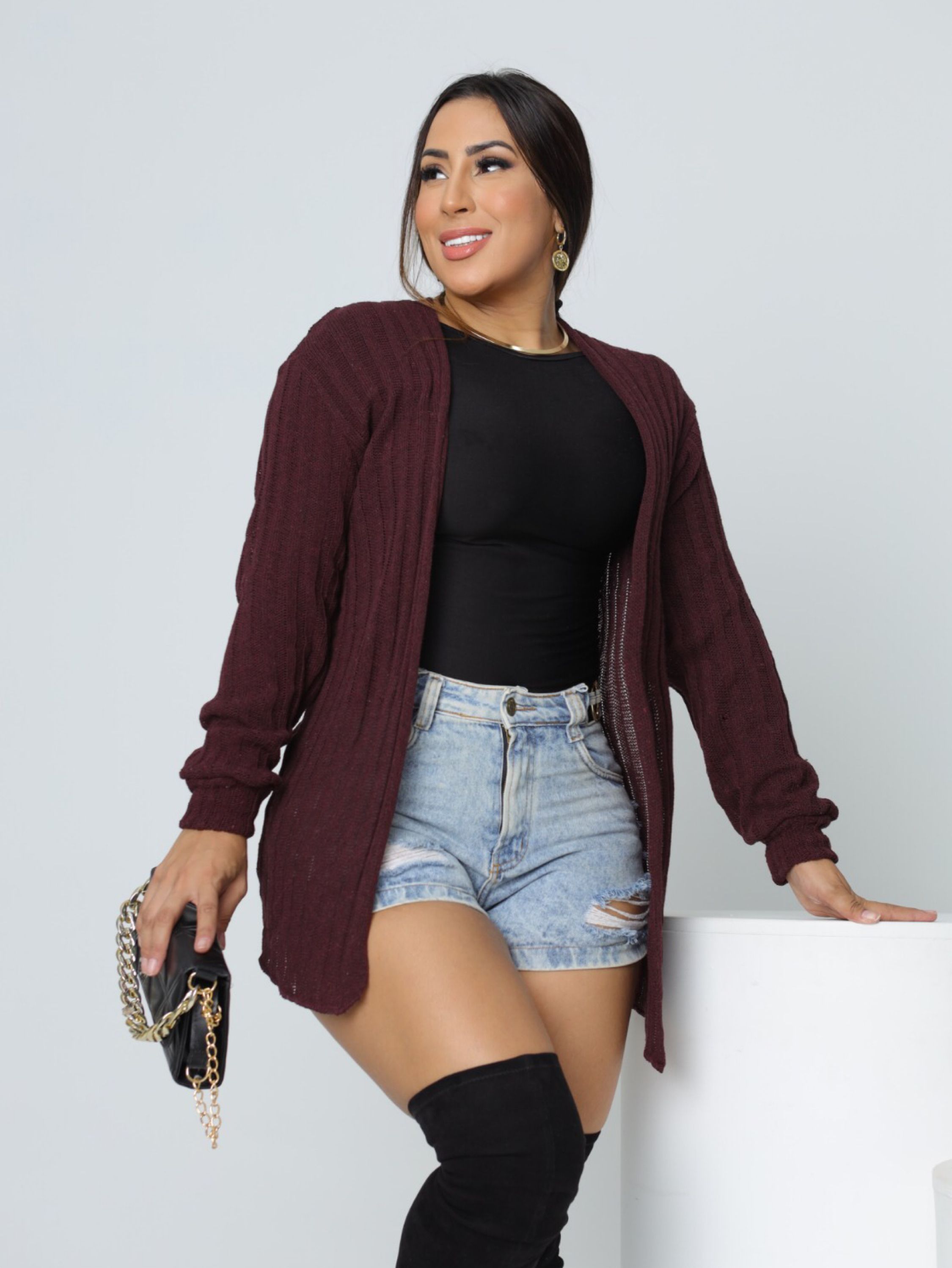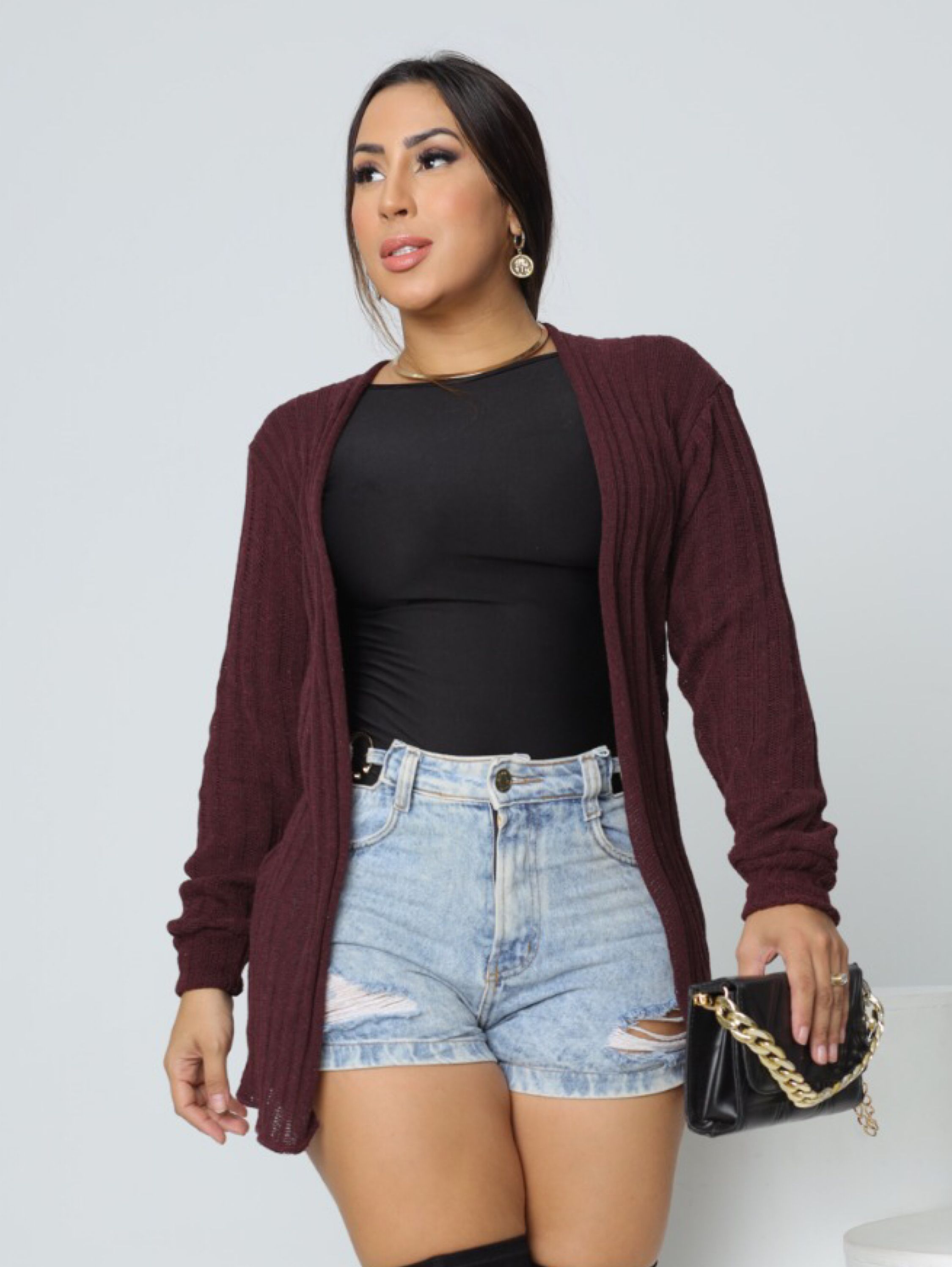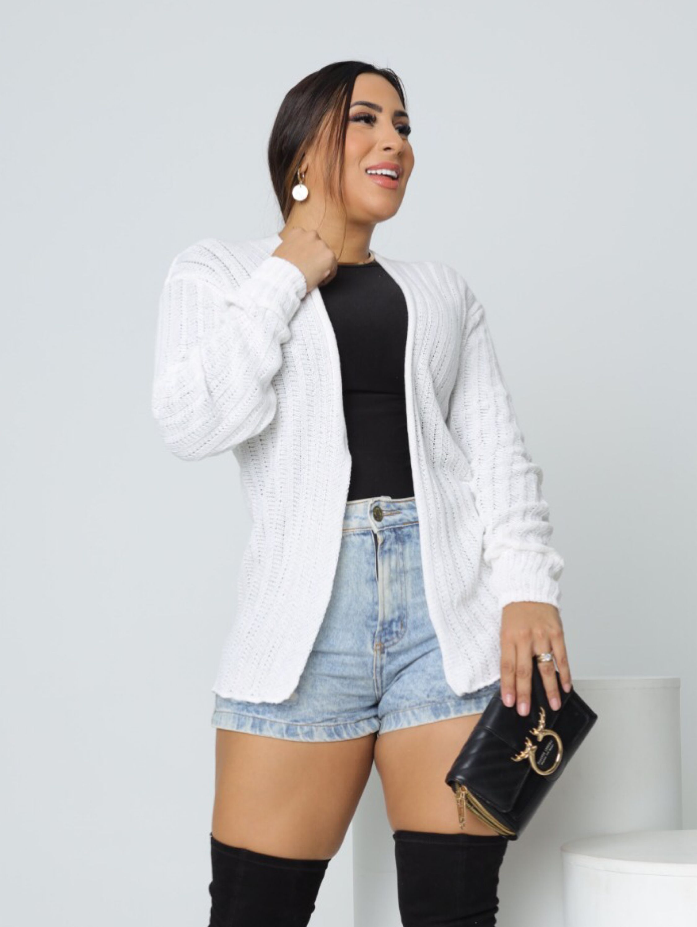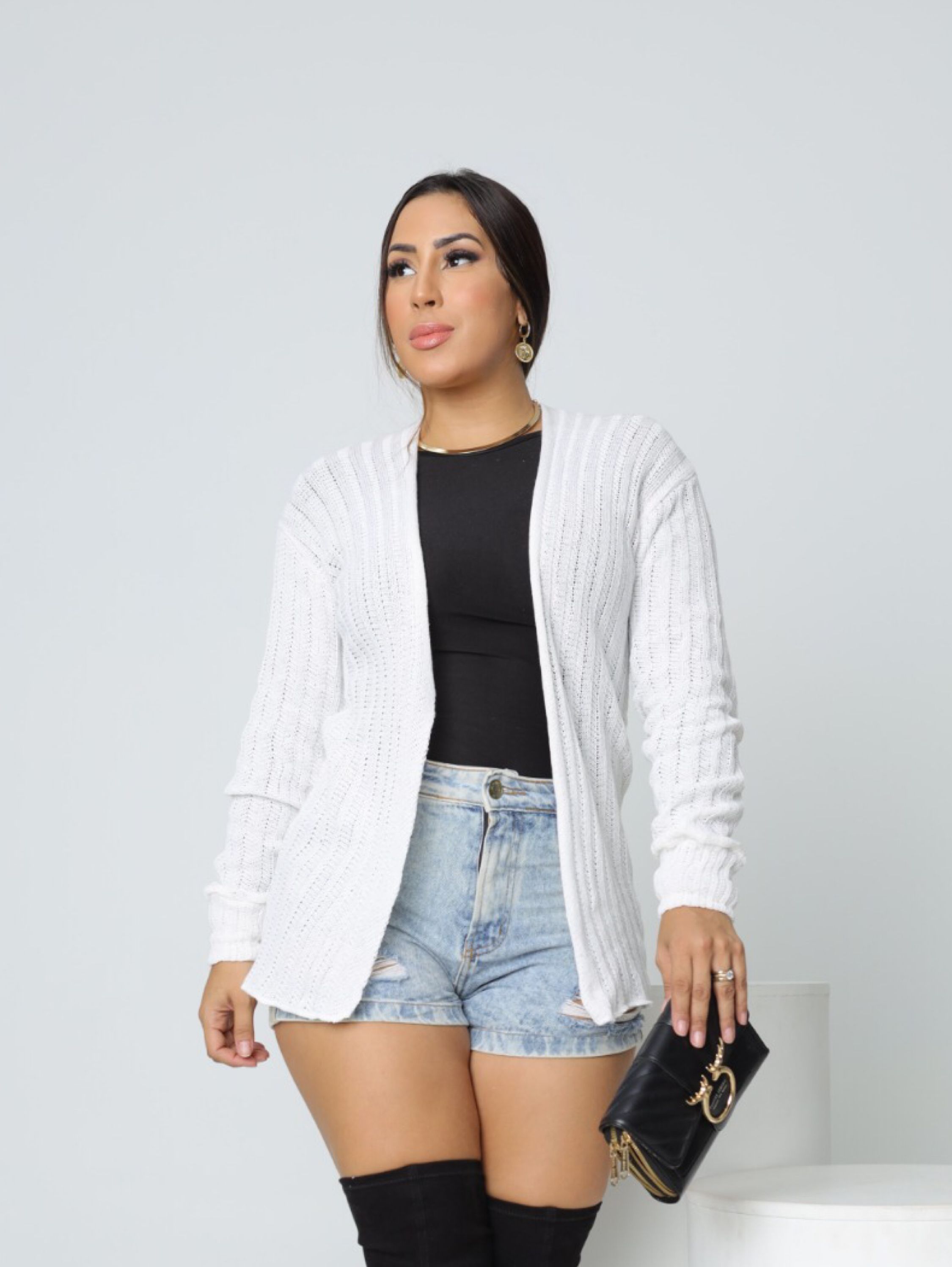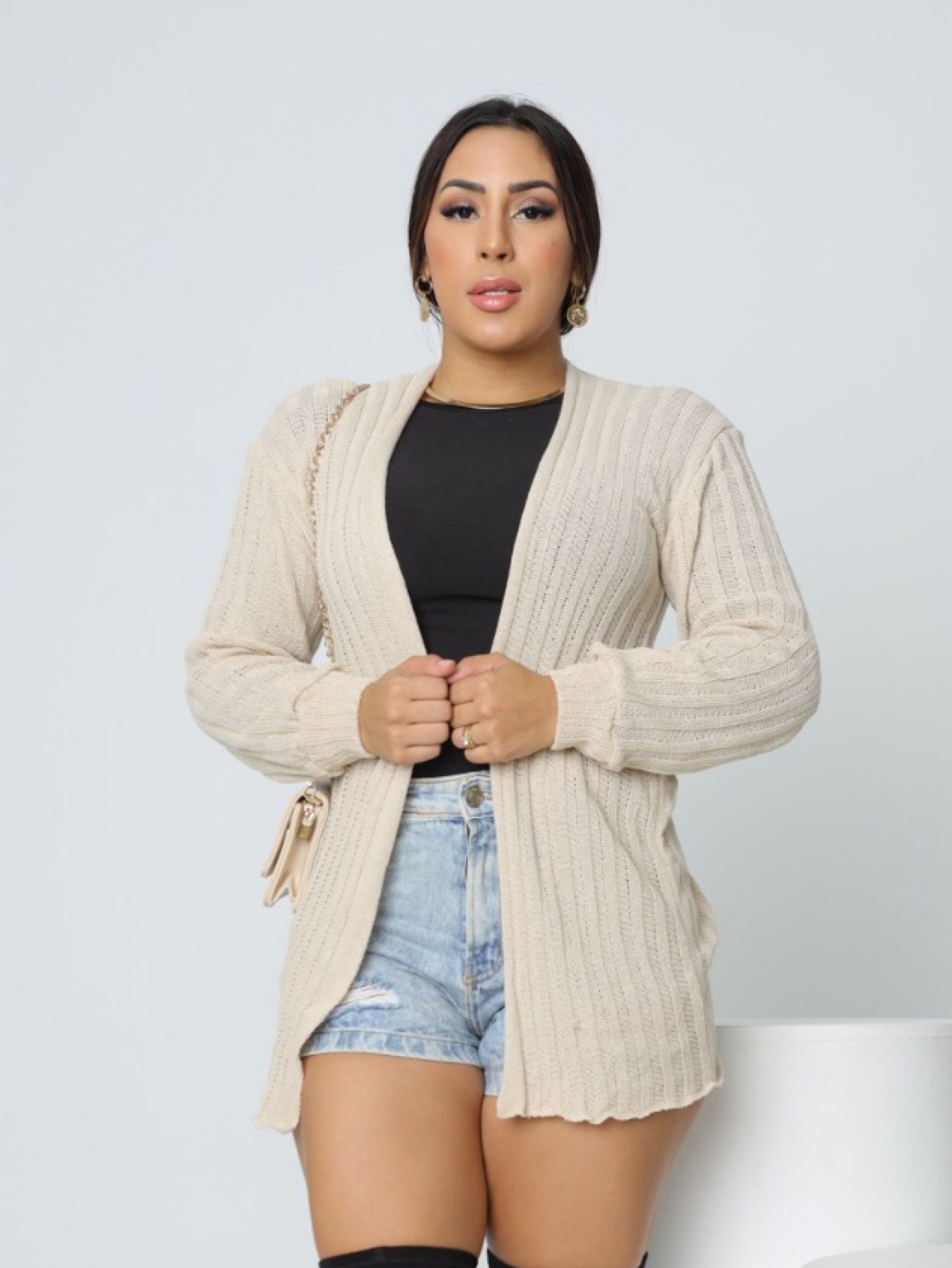 Cardigan Tricot Débora Casaco Manga Longa Punho Moda