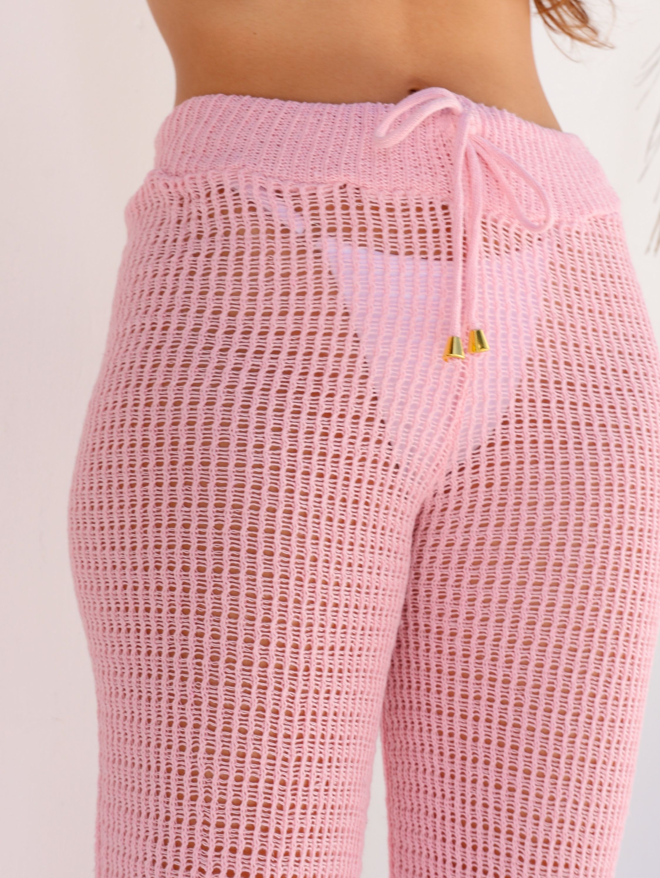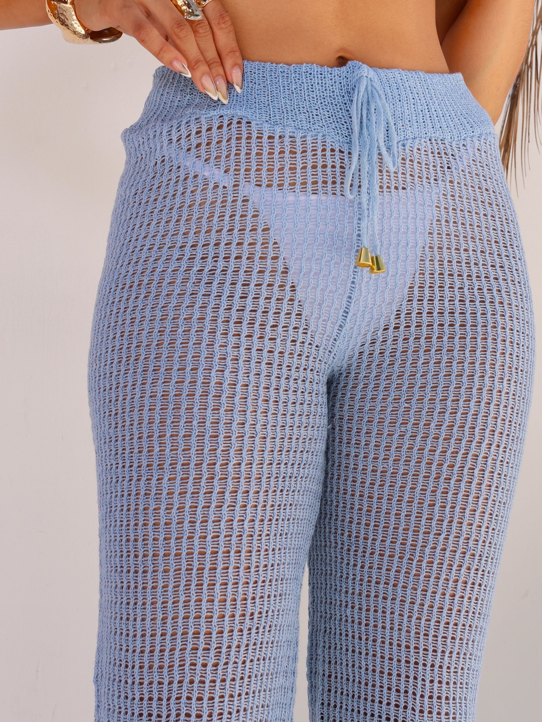 Calça Saída de Praia Tricô Cordão na Cintura Tendência Tradi
