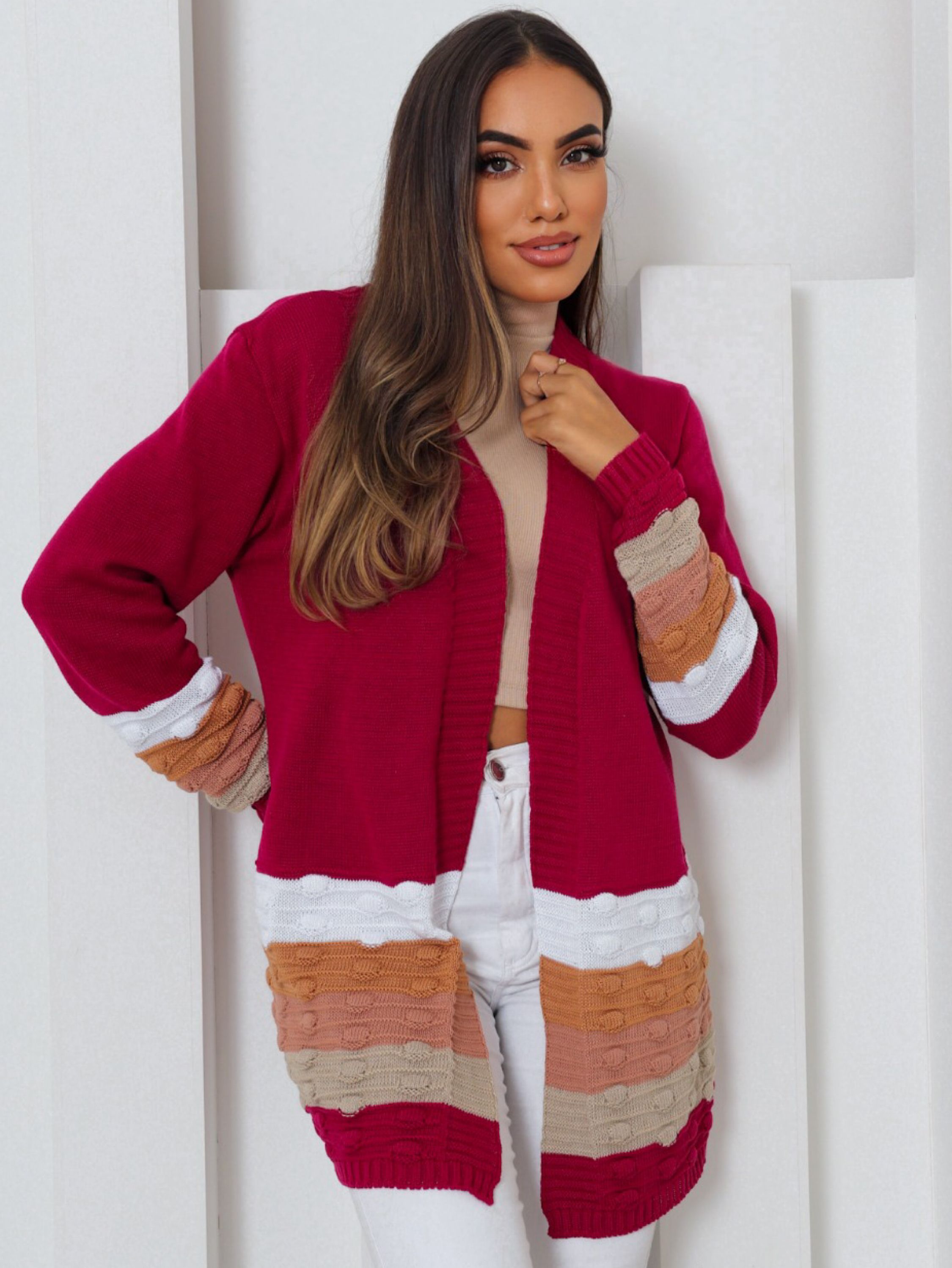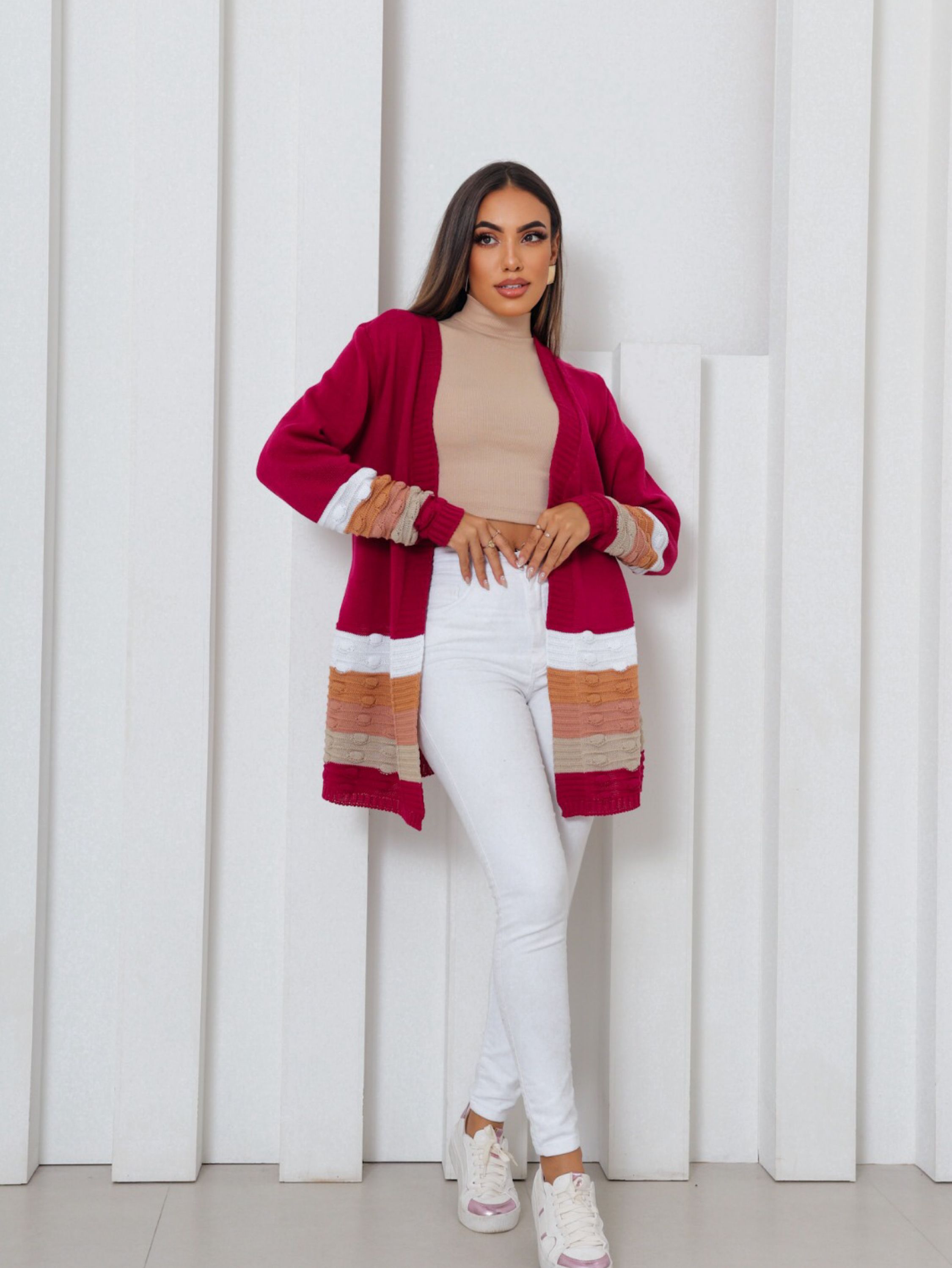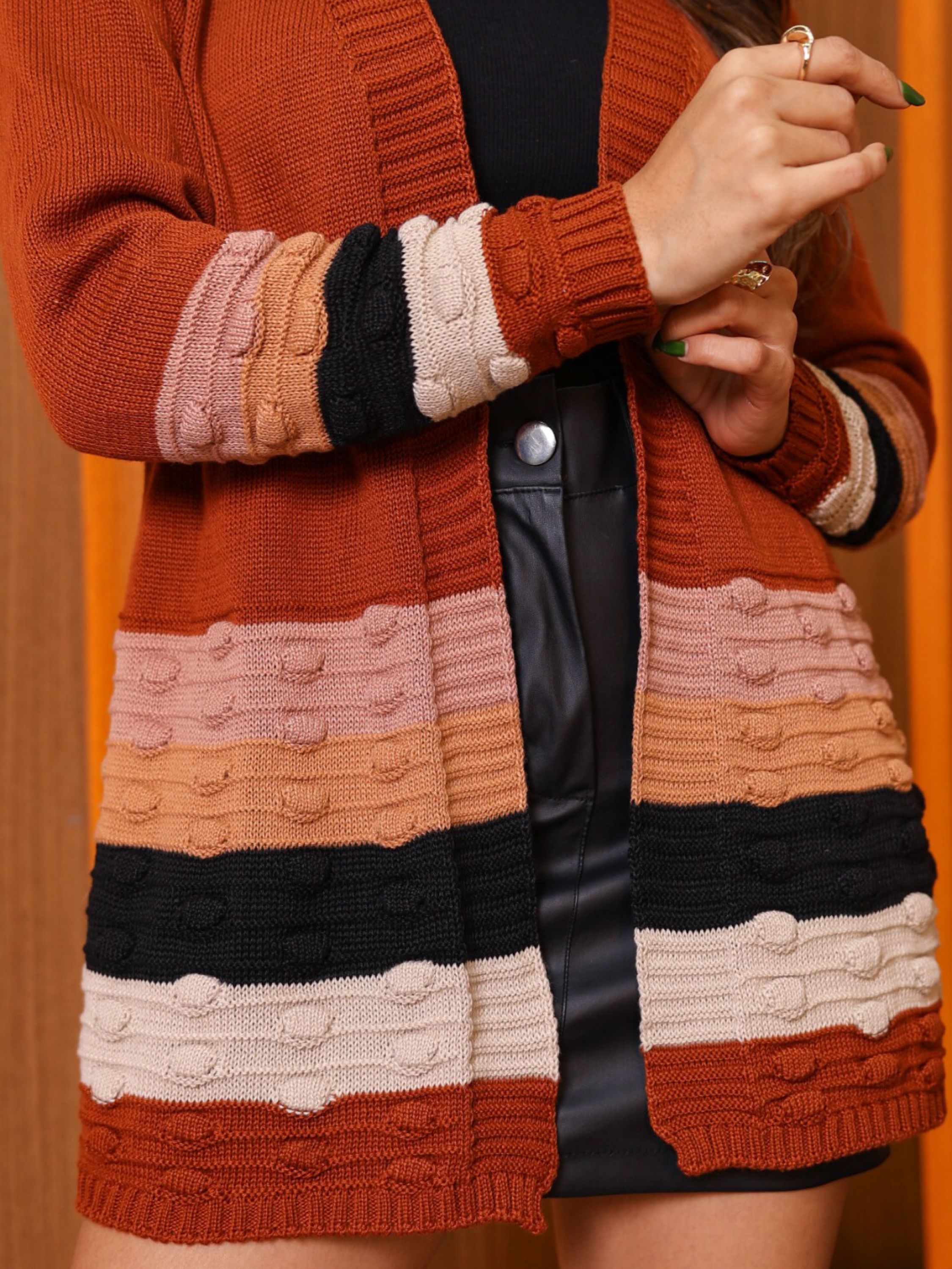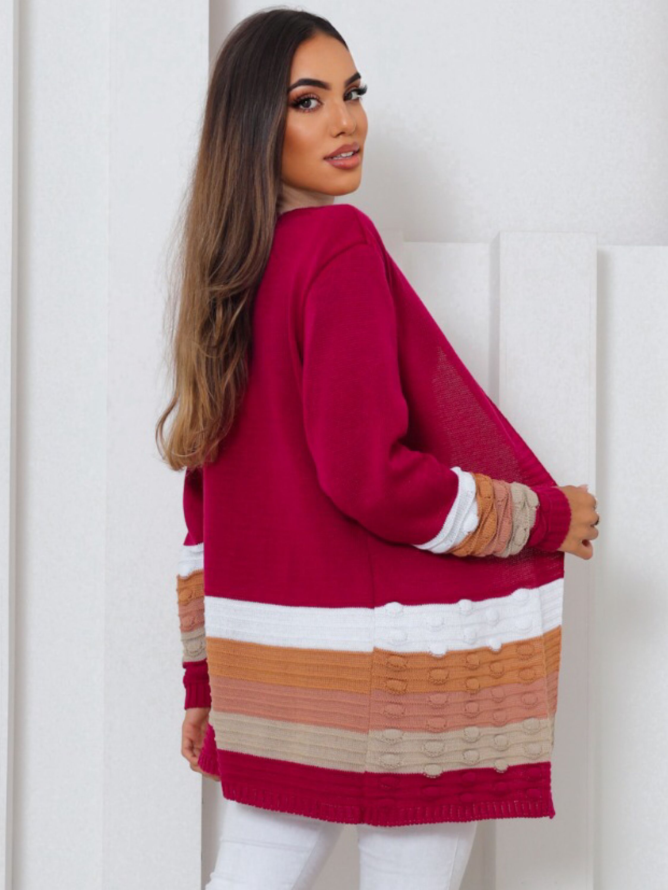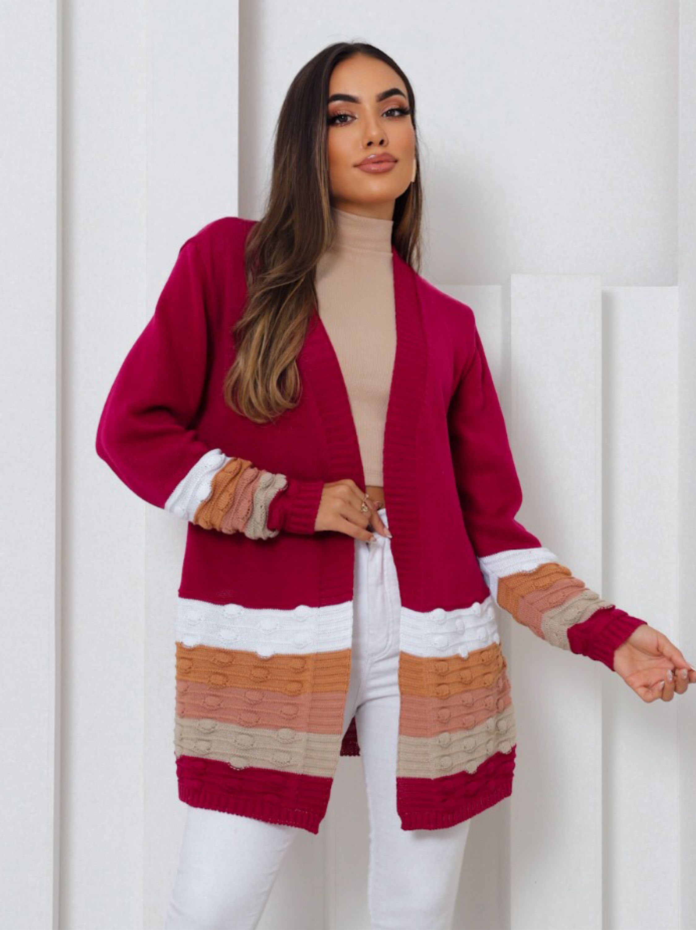 Cardigã Casaco Tricô Bella Manga Longa Listrado