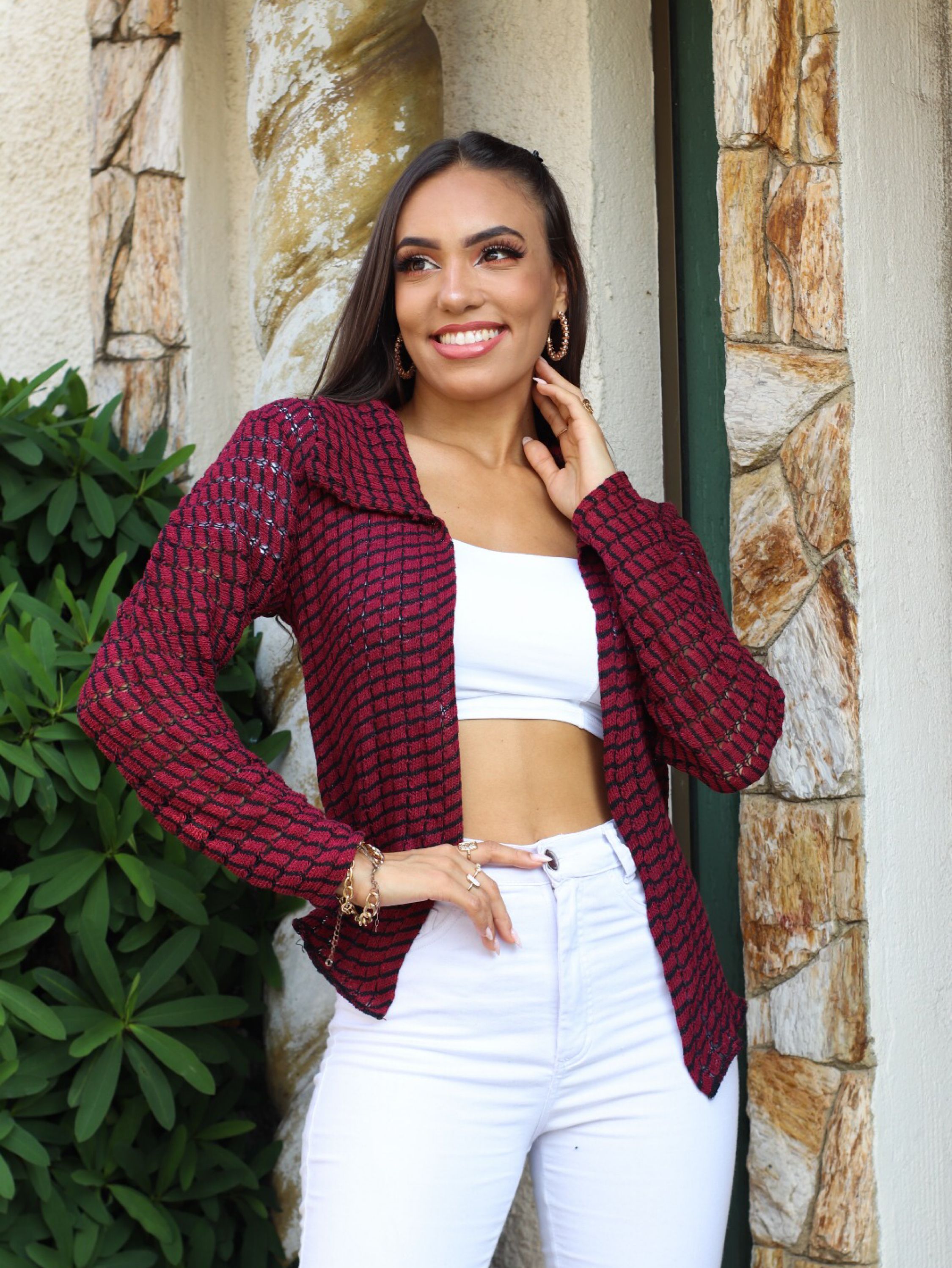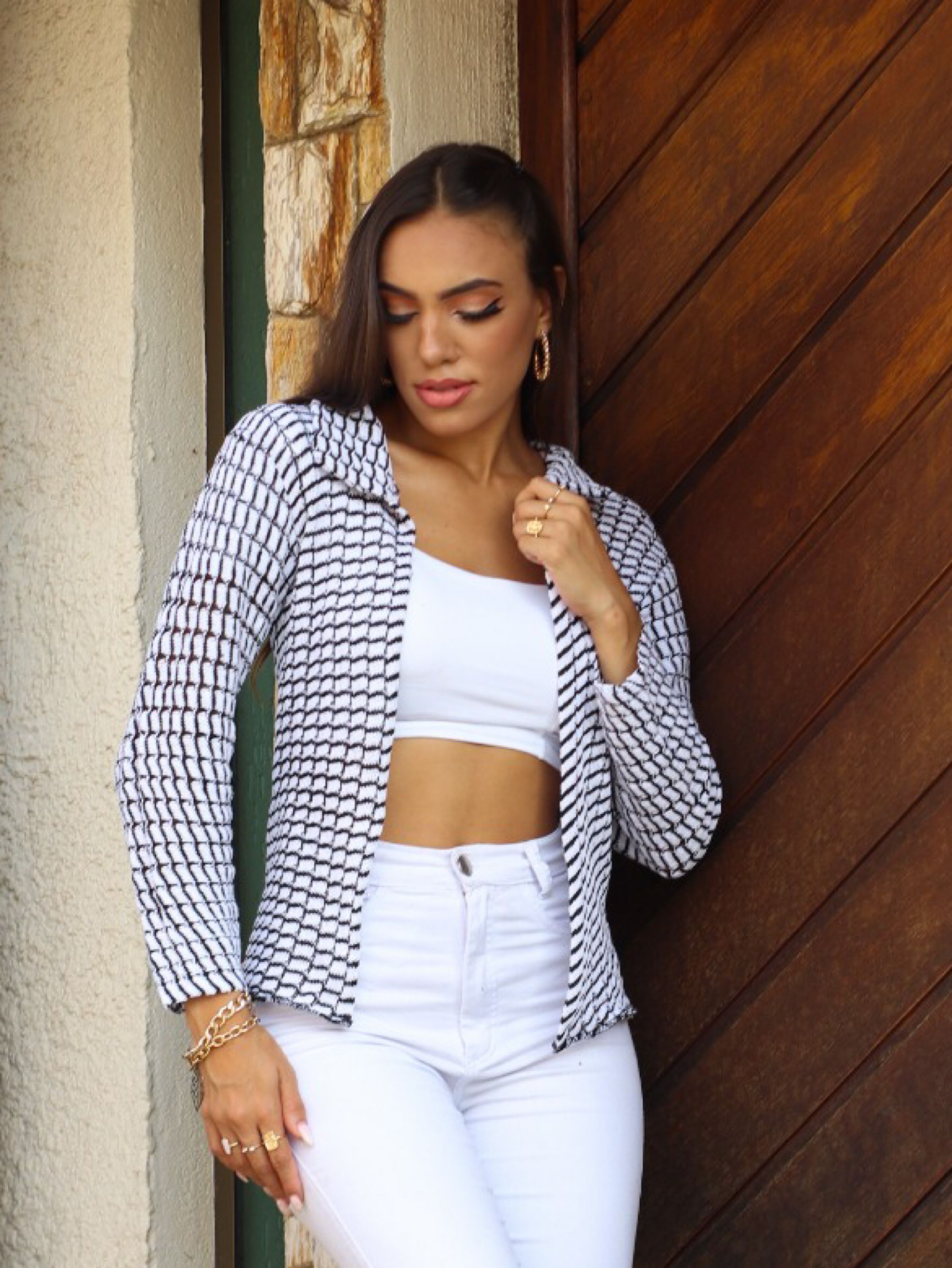 Blazer Casaco Tricô Quadradinho Manga Longa