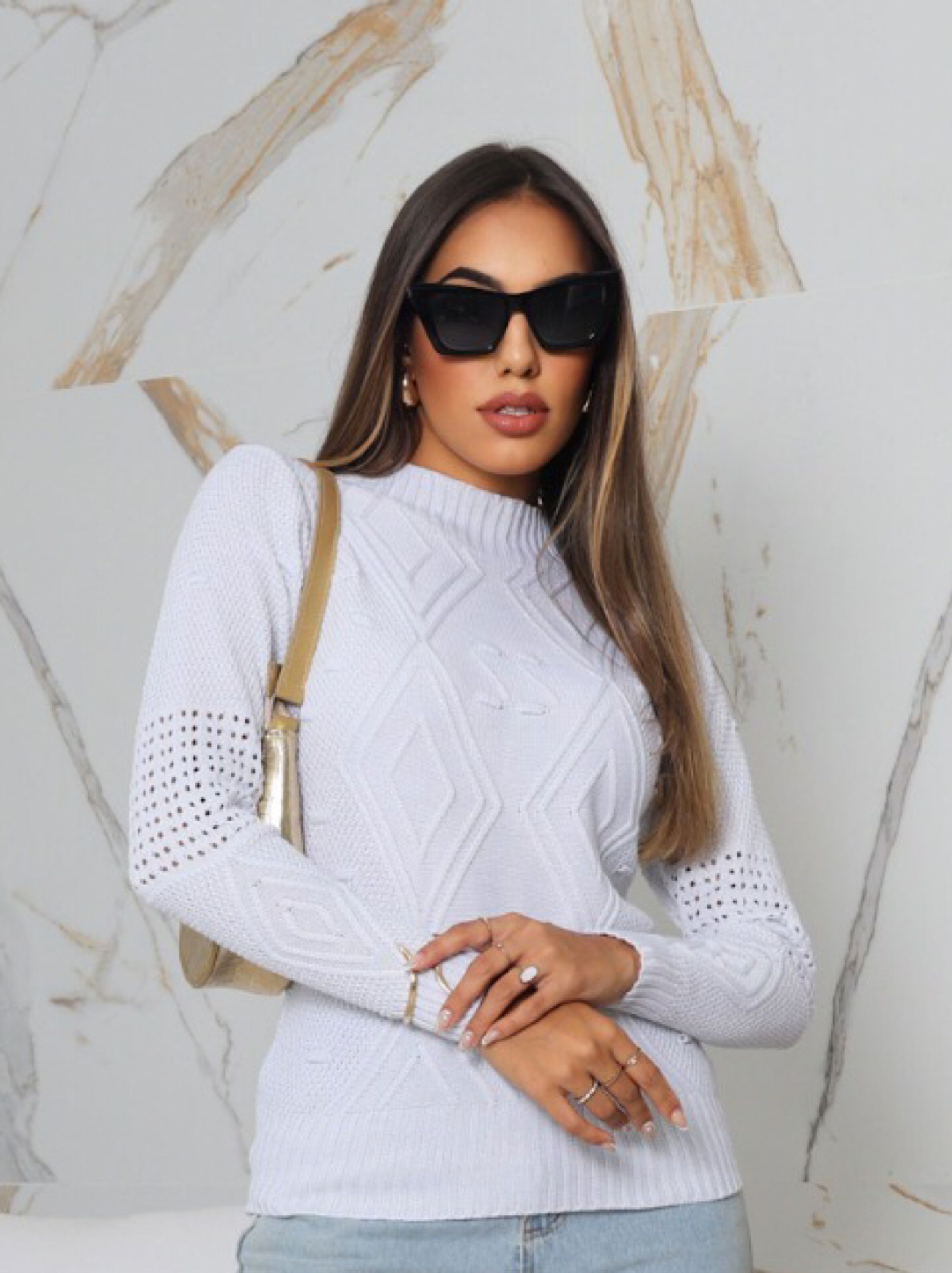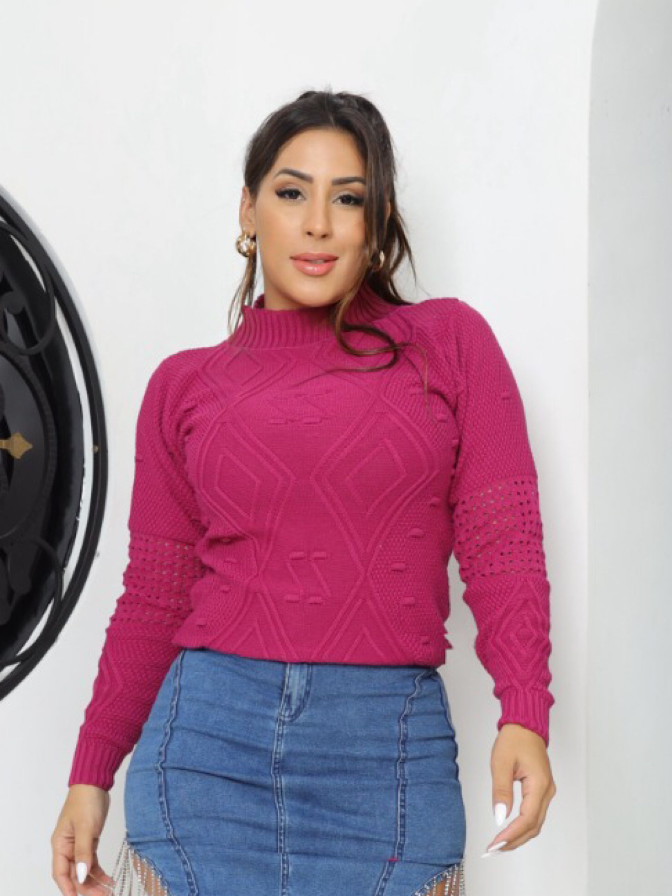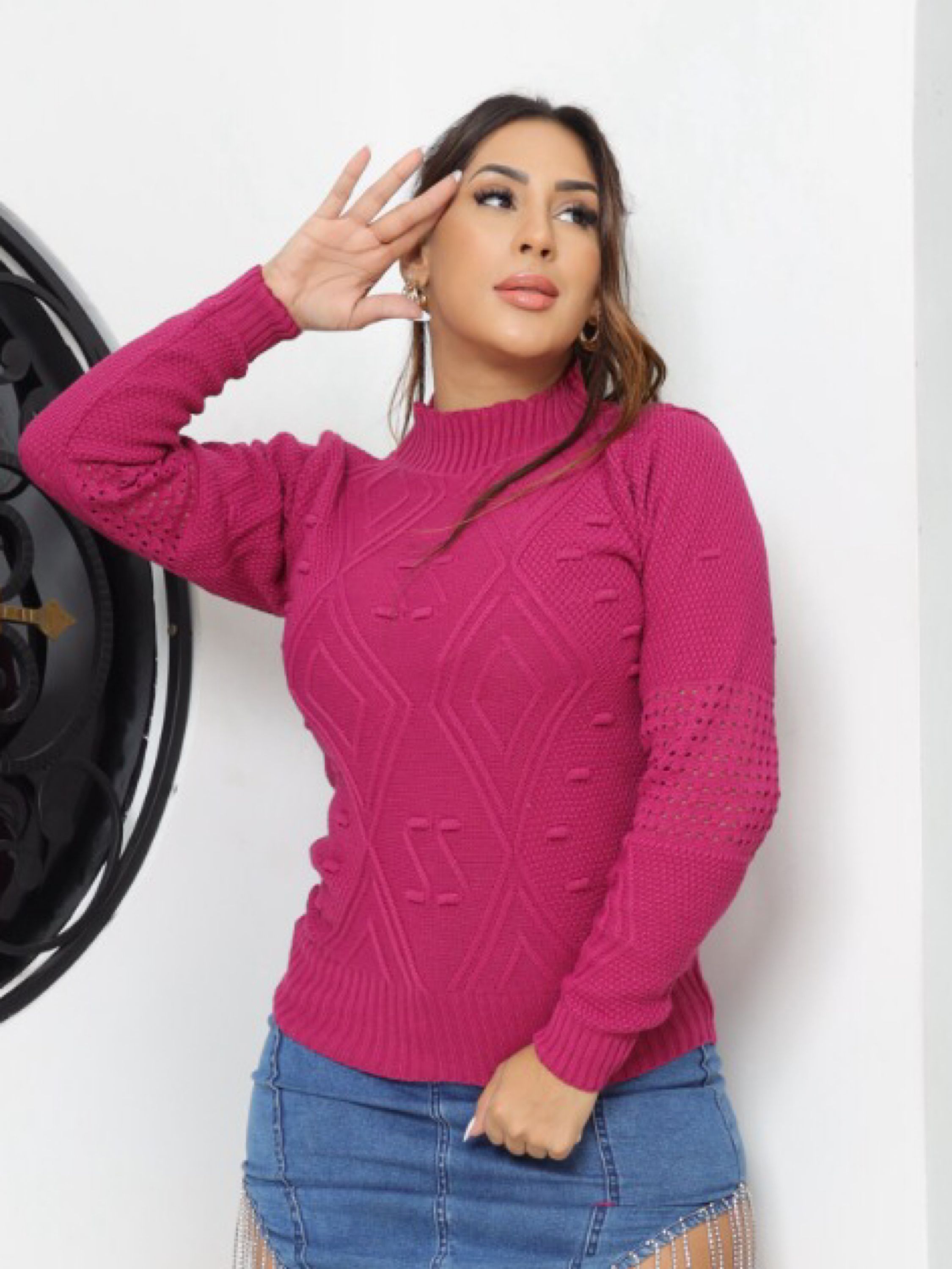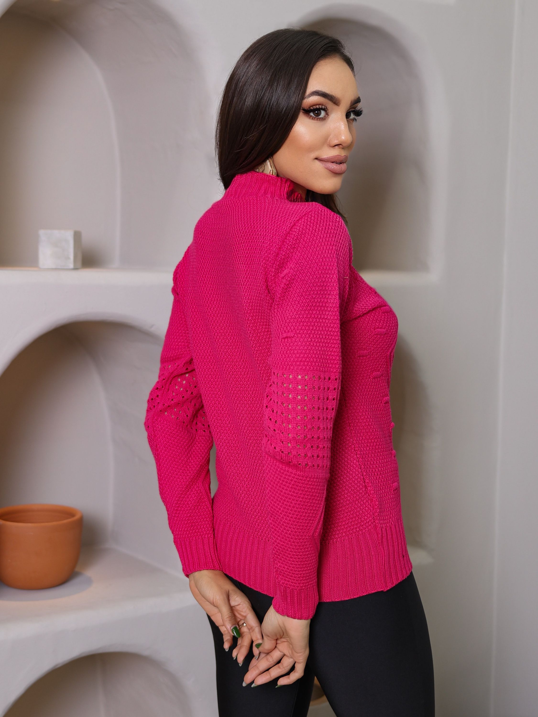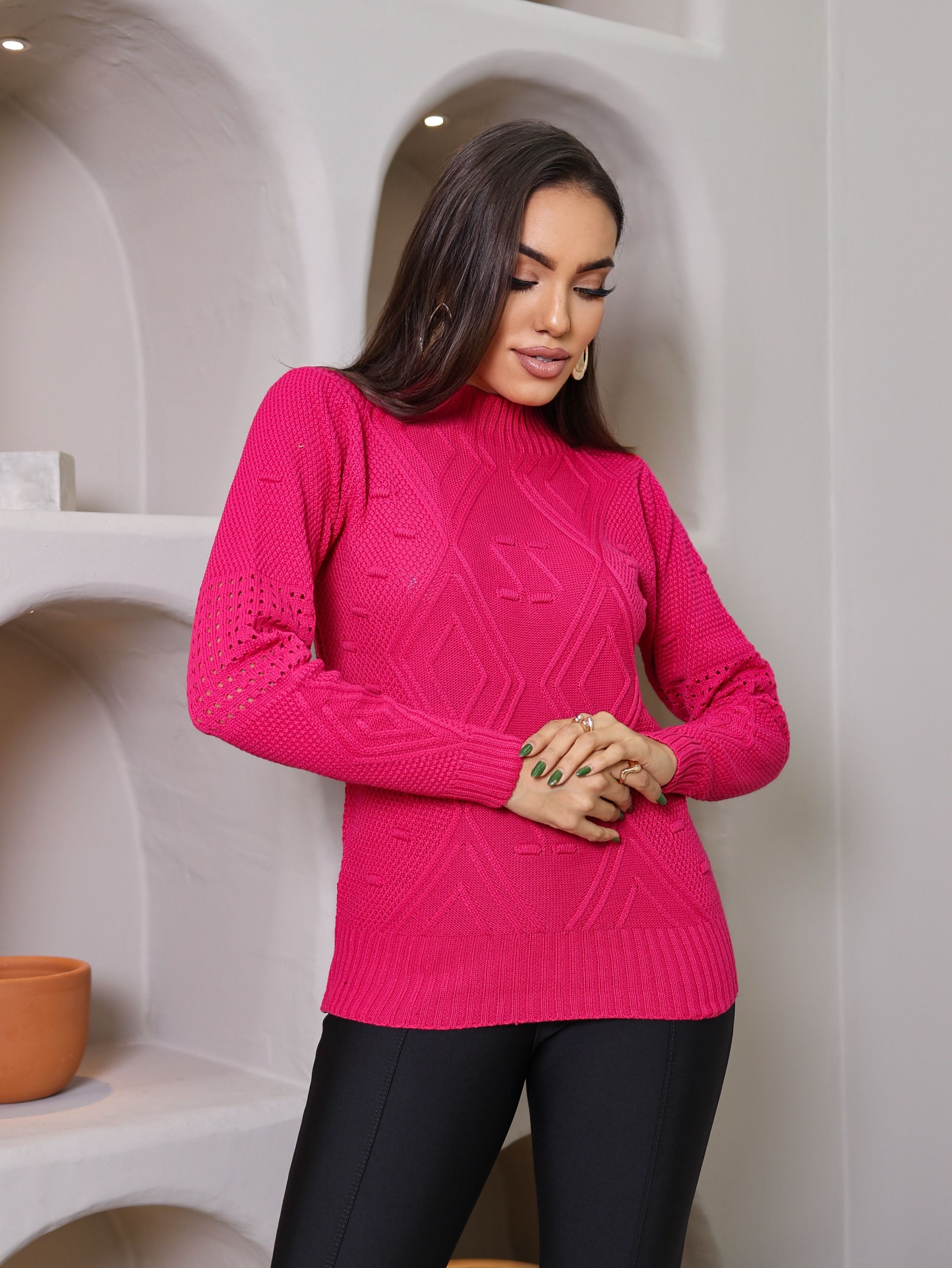 Esta Blusa de Tricot é a escolha perfeita para dias com temperatura mais baixa, pois além de aliviar o frio é uma peça que traz muita elegância e estilo. Com um design moderno, jovial e delicado, é confeccionado com materiais leves e macios, proporcionando conforto durante o uso. Com uma trama bem detalhada, o que a torna uma peça quase que exclusiva, é linda e bem encorpada e proporciona uma confiança de que é ideal para dias mais frios e se torna uma peça chave para você que busca um estilo único e sofisticado. Tamanho único veste 38 ao 44 RECOMENDAÇÃO DE USO: • Usar sabão neutro. • Secar na sombra. • Lavar a mão