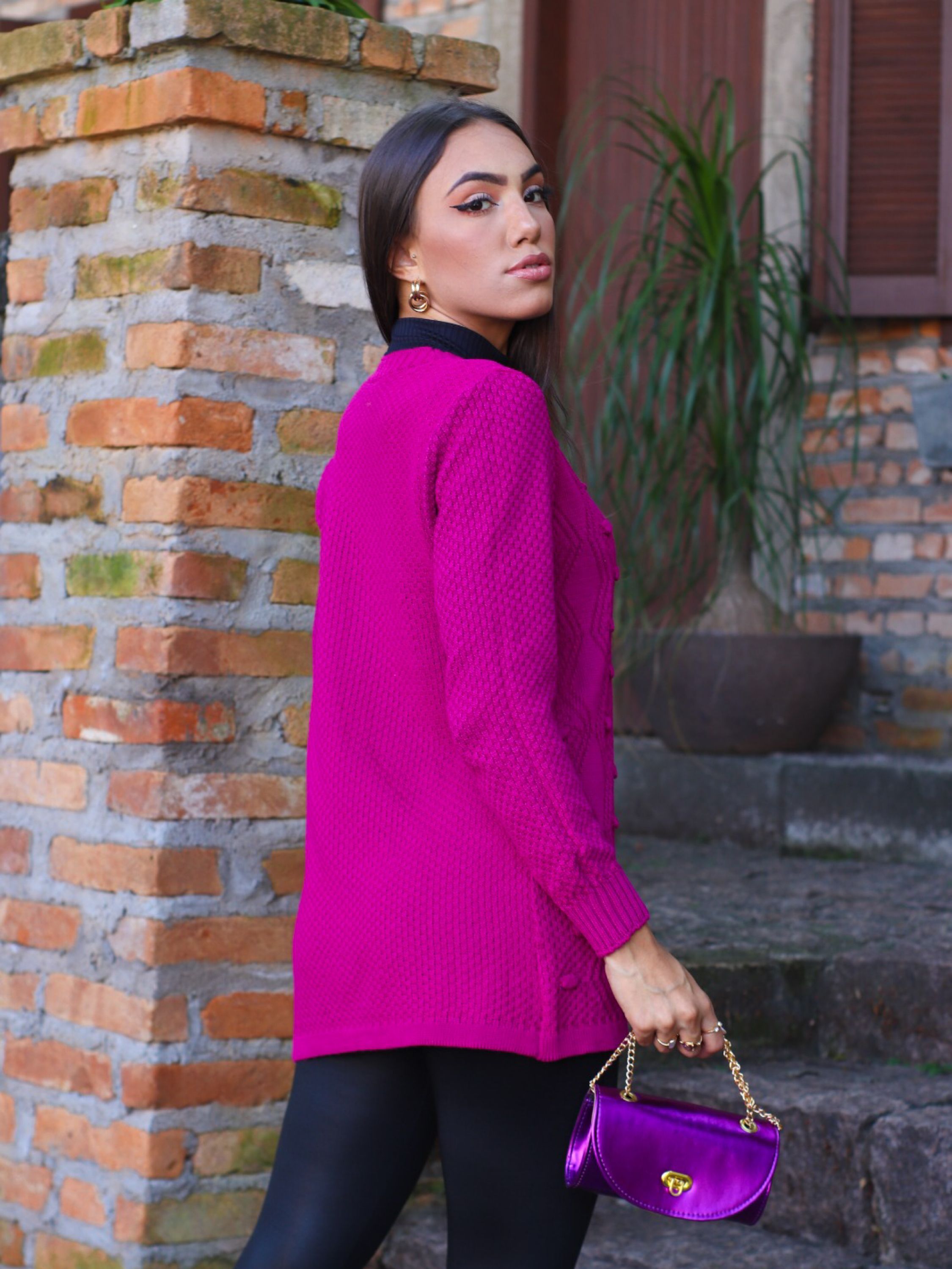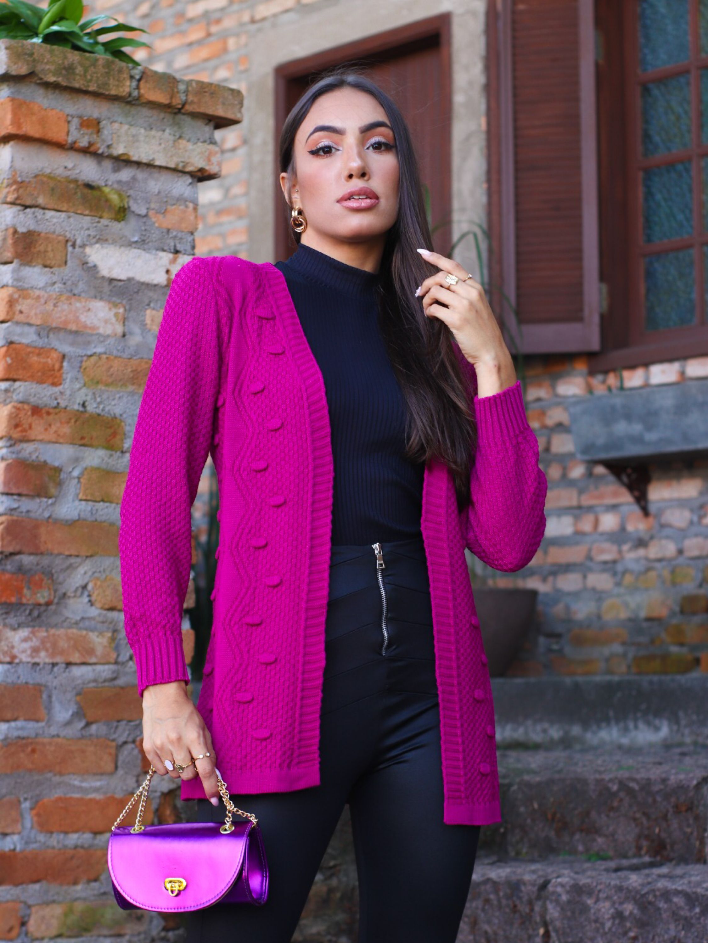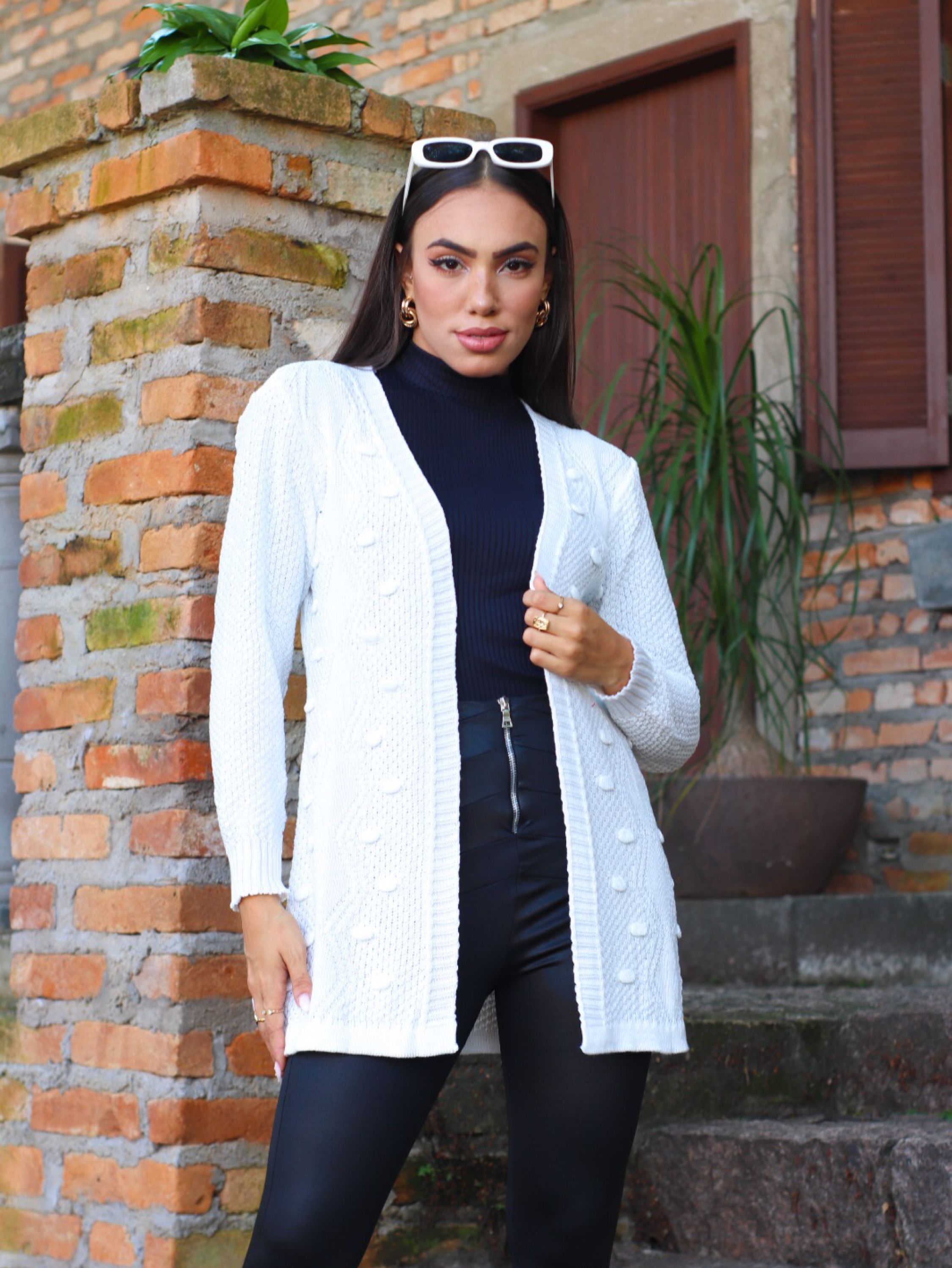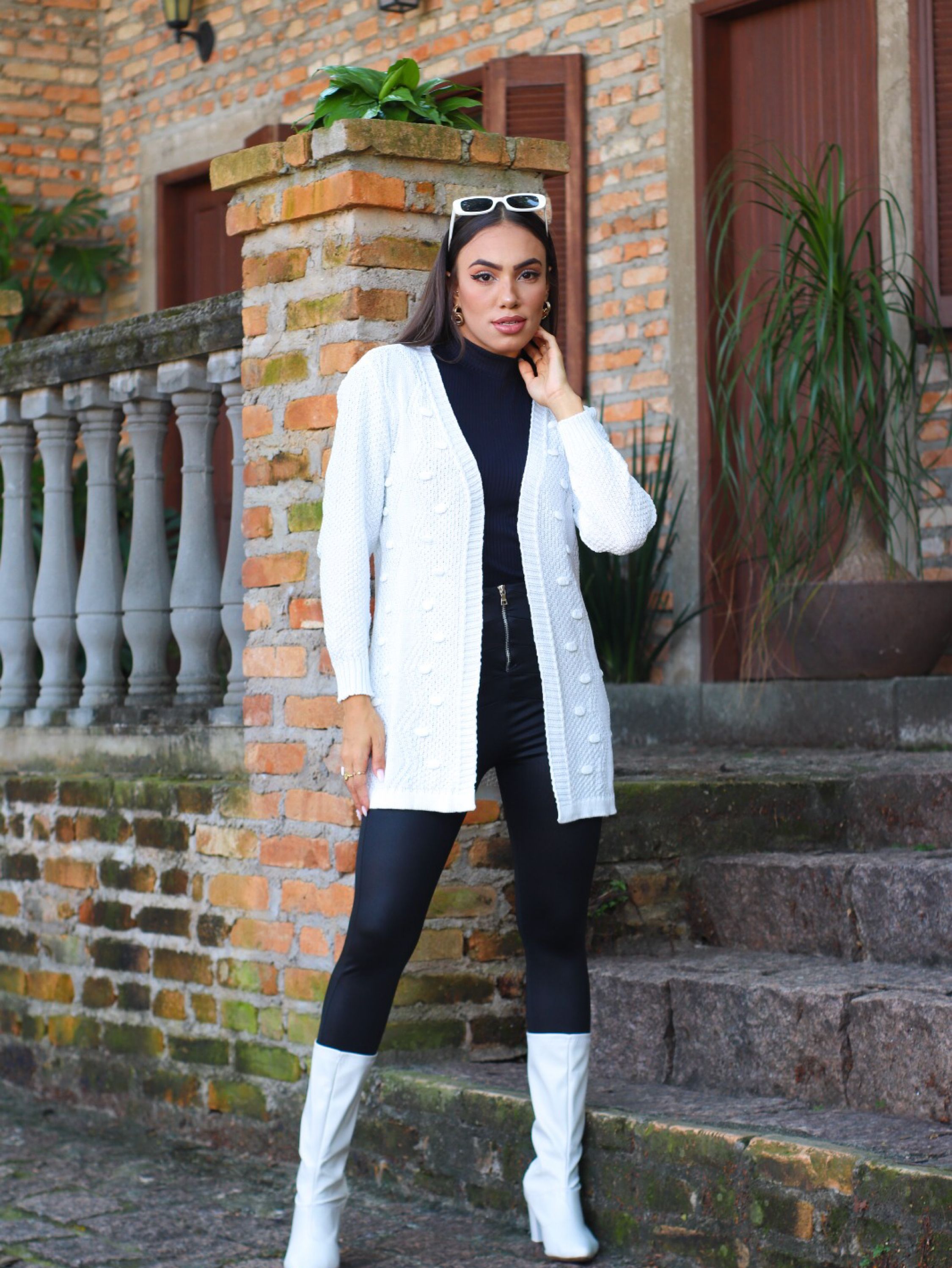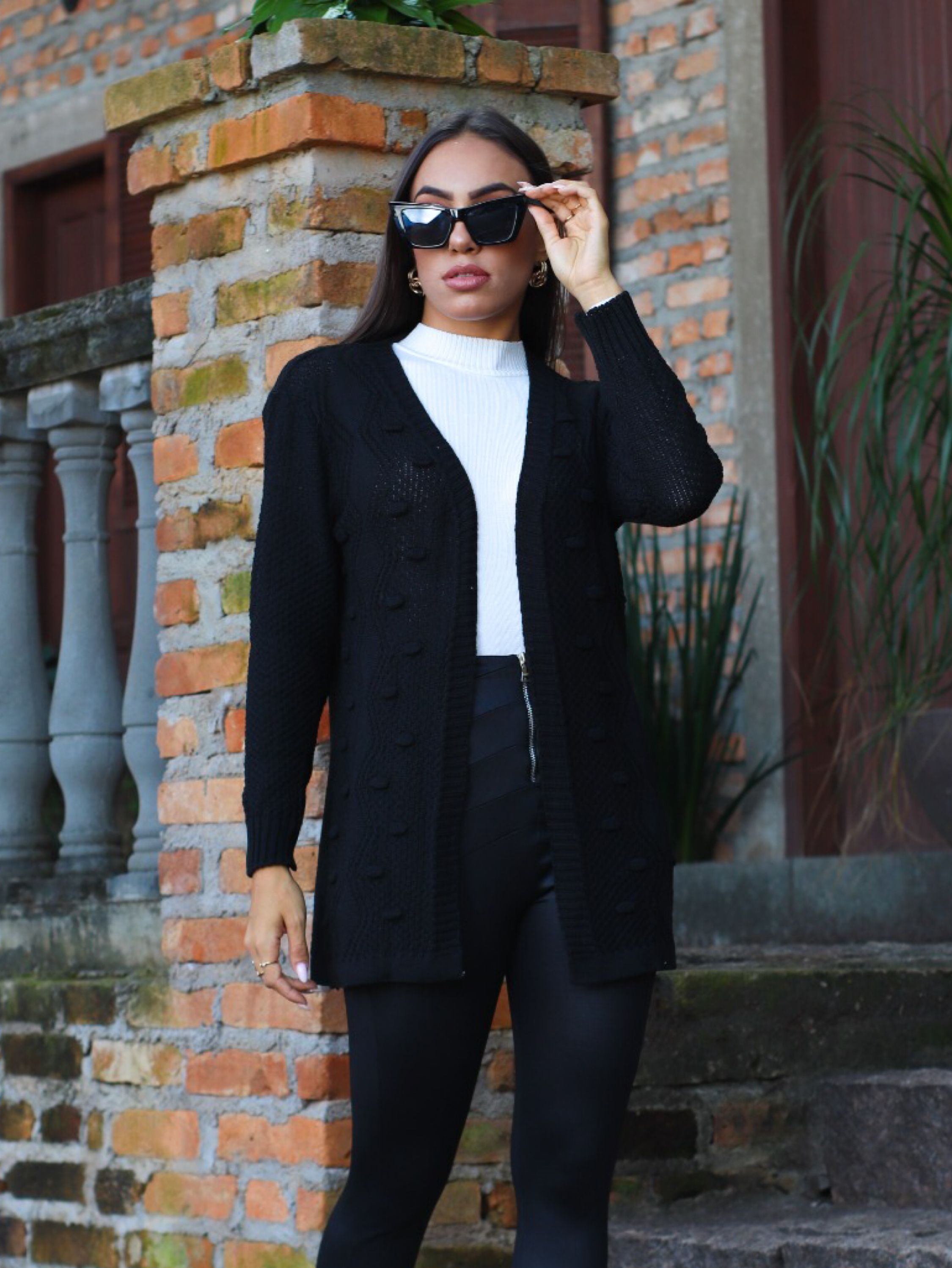 Este Cardigan é a escolha perfeita para dias com temperaturas mais baixas, ou para dar aquela saidinha a noite com muito estilo. Com um design moderno, prático, e fofo é confeccionado com materiais leves e macios, proporcionando conforto durante o uso. Tendo um caimento perfeito e detalhes diferenciados, oferece diversas opções de uso como sair a noite, ir ao trabalho e ir ao shopping, oferecendo não apenas praticidade, mas também um toque de estilo único ao seu look. Tamanho único veste 38 ao 44. COMPOSIÇÃO: 100% Poliéster RECOMENDAÇÃO DE USO: * Usar sabão neutro. * Secar na sombra. * Lavar a mãos