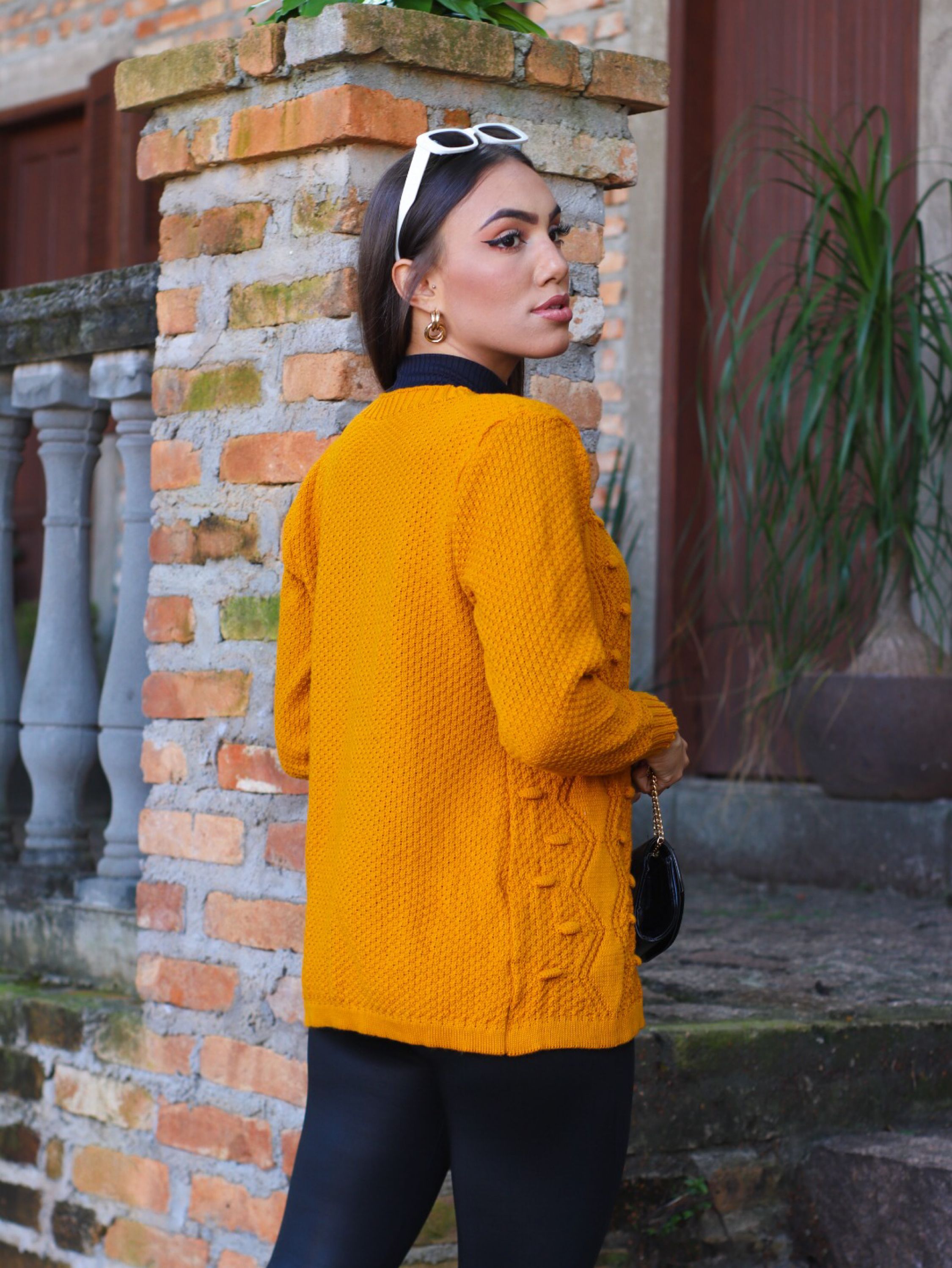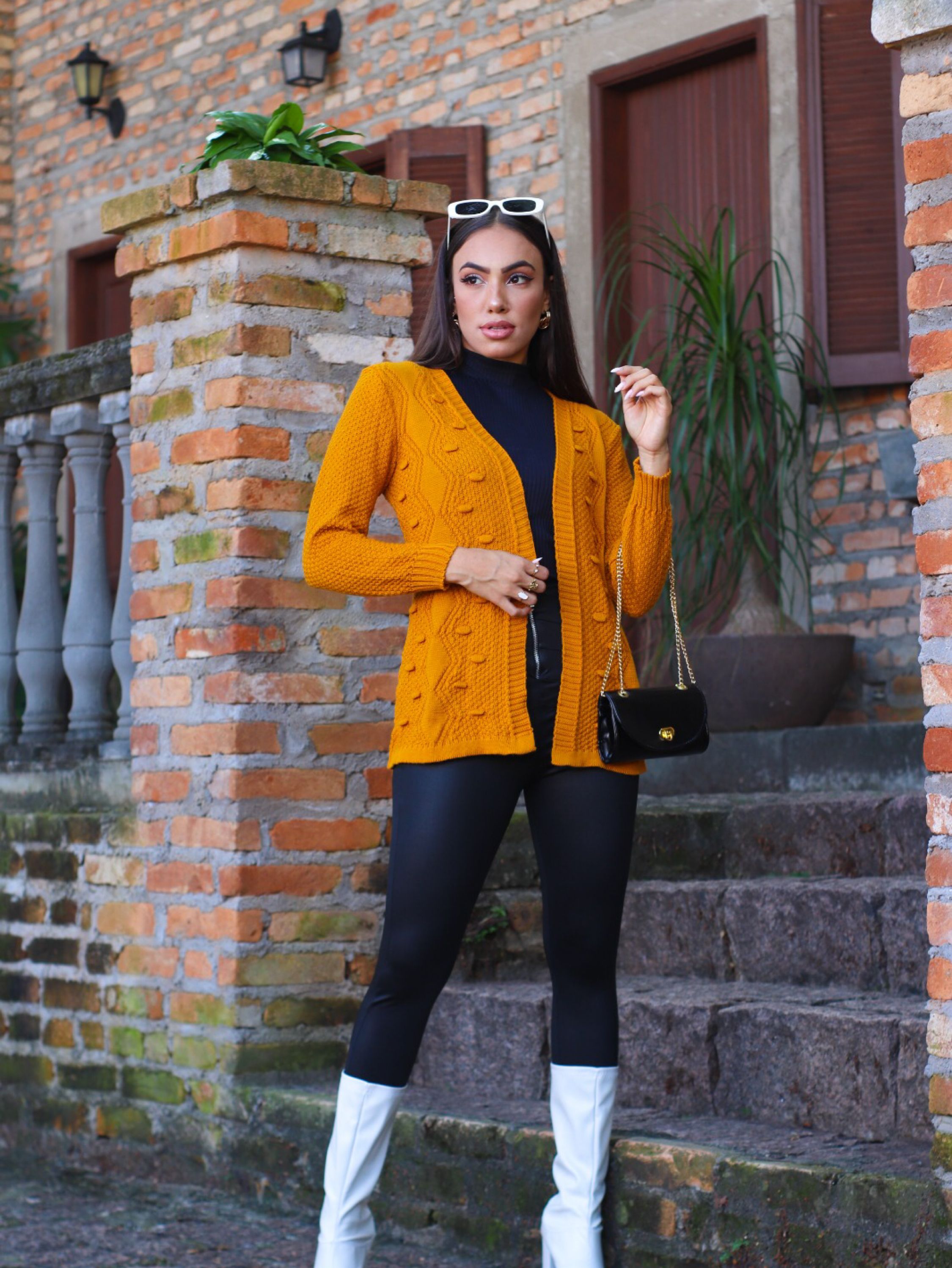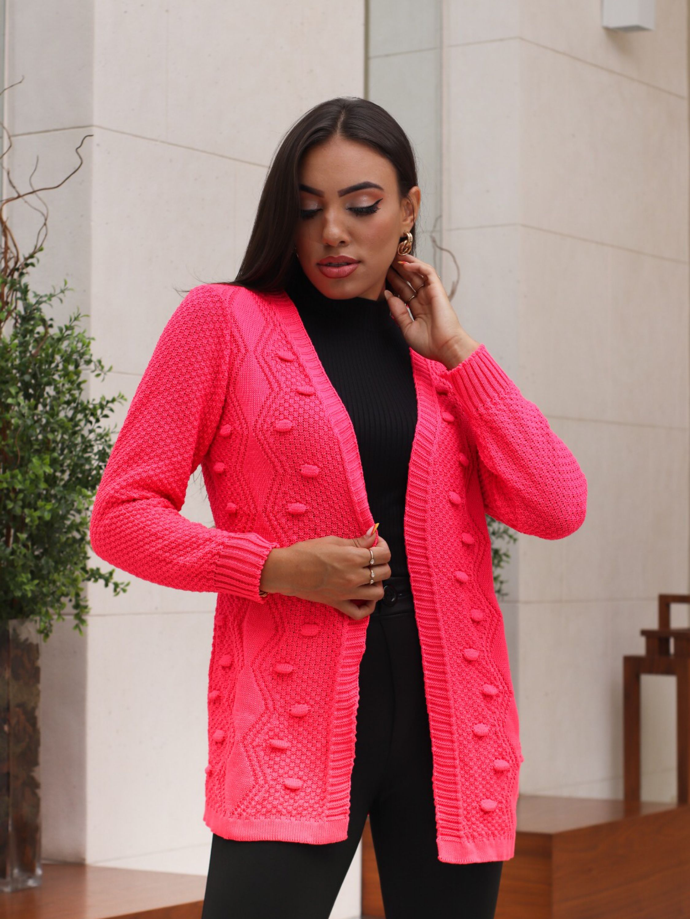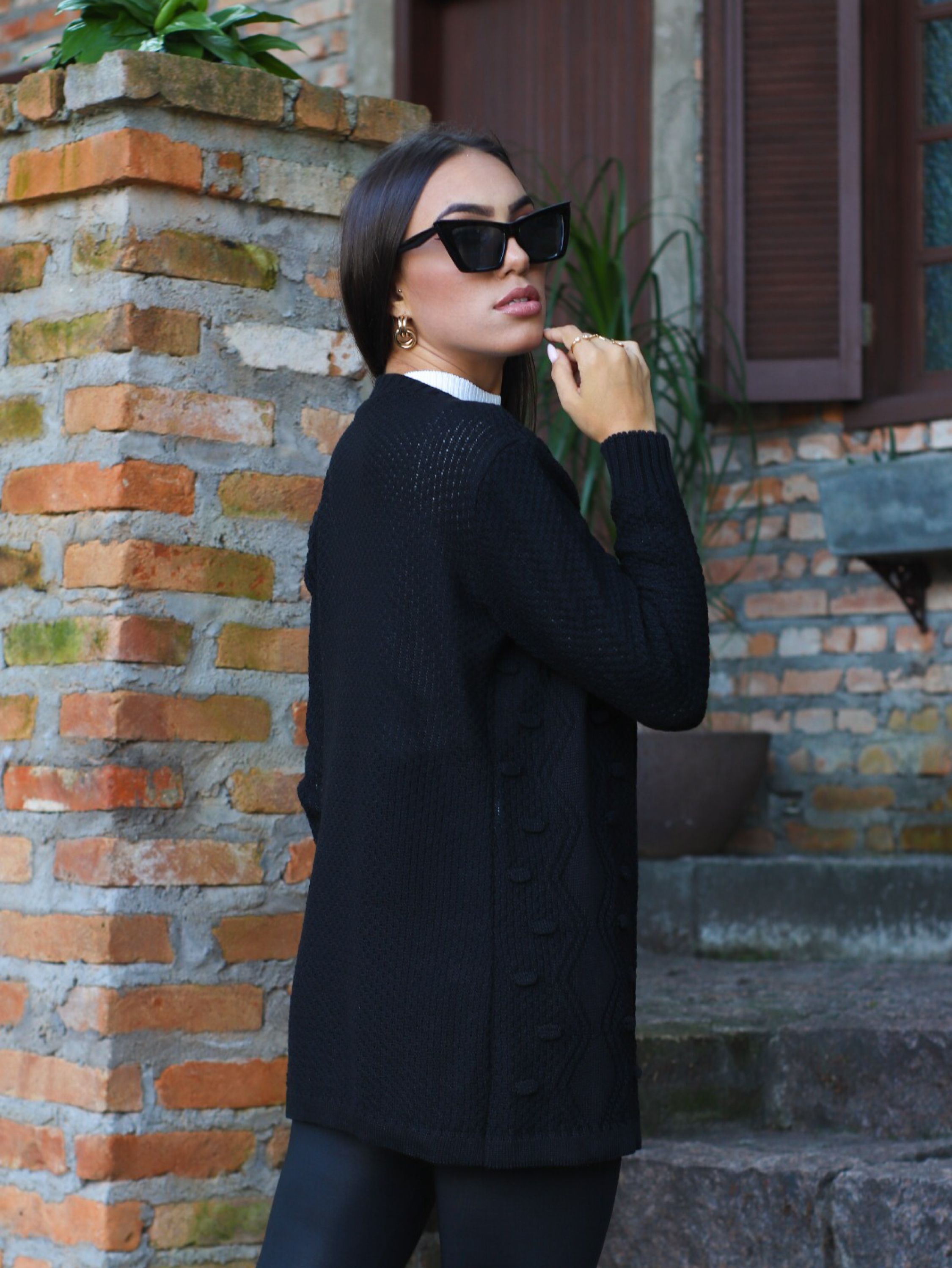 Este Cardigan é a escolha perfeita para dias com temperaturas mais baixas, ou para dar aquela saidinha a noite com muito estilo. Com um design moderno, prático, e fofo é confeccionado com materiais leves e macios, proporcionando conforto durante o uso. Tendo um caimento perfeito e detalhes diferenciados, oferece diversas opções de uso como sair a noite, ir ao trabalho e ir ao shopping, oferecendo não apenas praticidade, mas também um toque de estilo único ao seu look. Tamanho único veste 38 ao 44. COMPOSIÇÃO: 100% Poliéster RECOMENDAÇÃO DE USO: * Usar sabão neutro. * Secar na sombra. * Lavar a mãos
