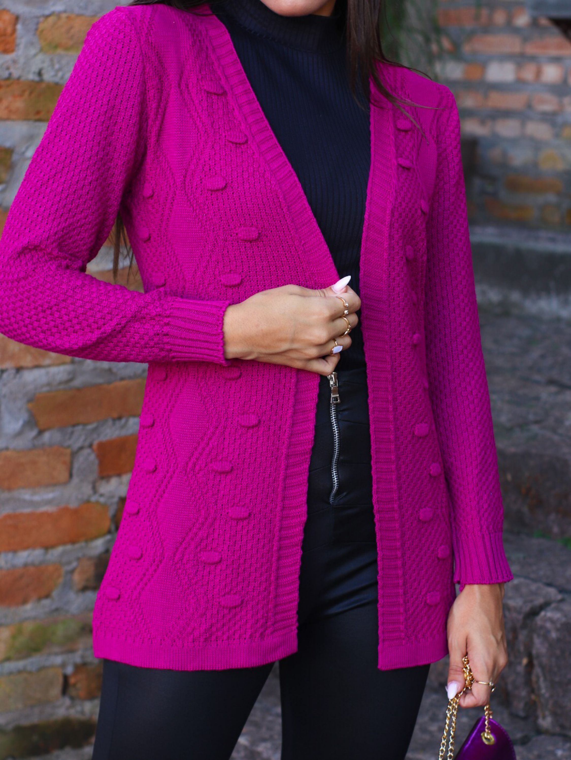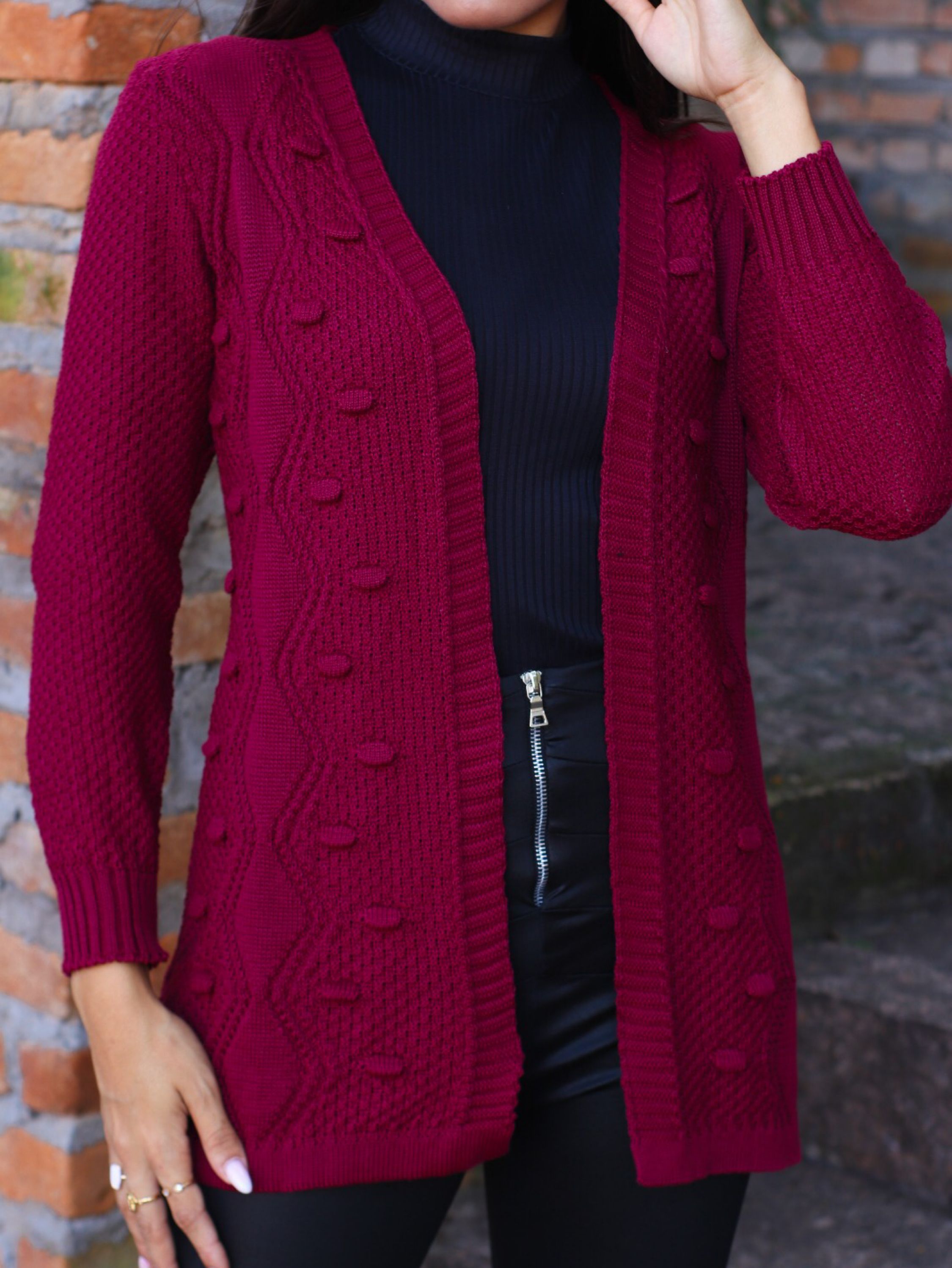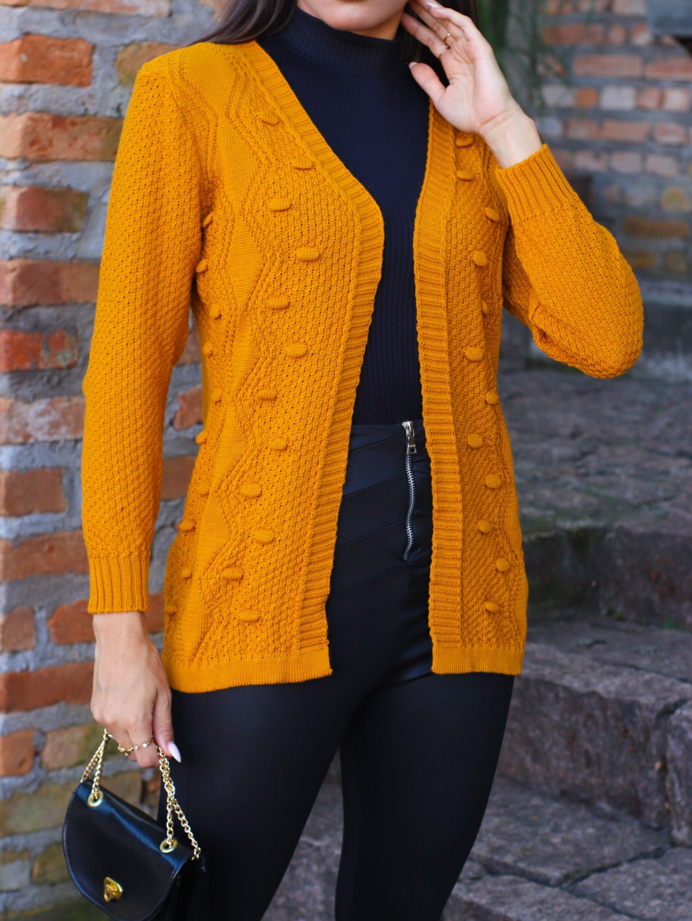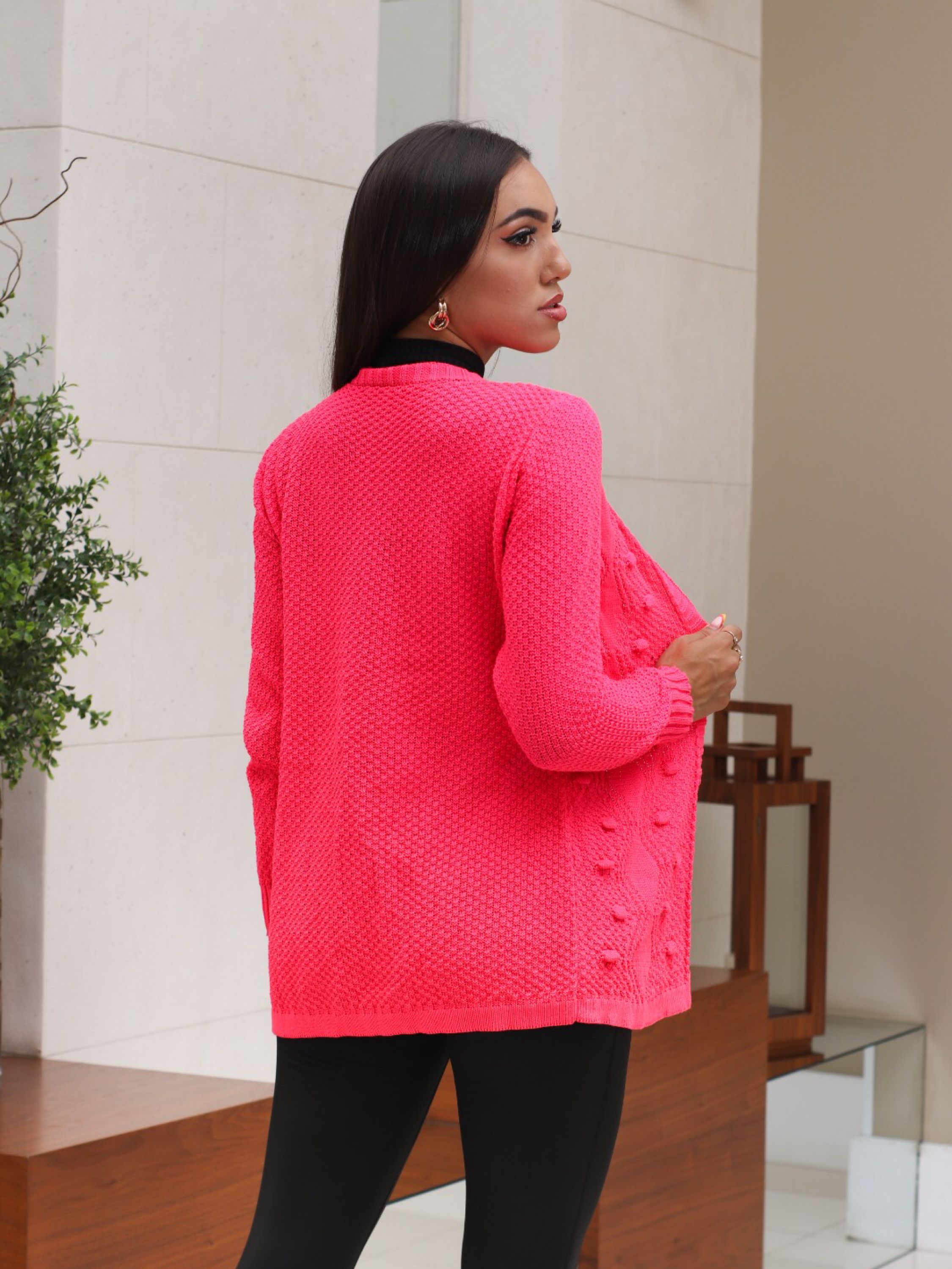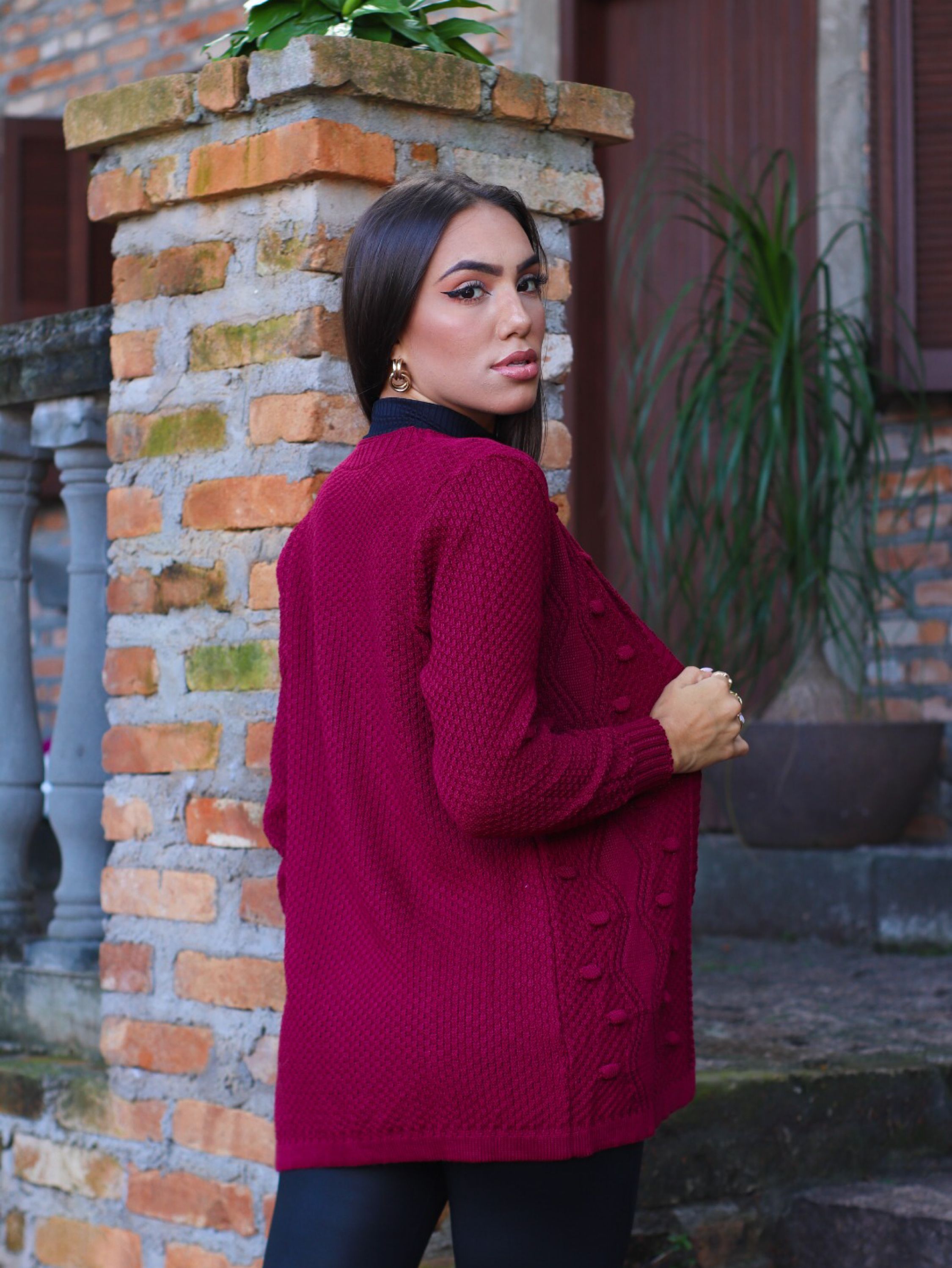 Este Cardigan é a escolha perfeita para dias com temperaturas mais baixas, ou para dar aquela saidinha a noite com muito estilo. Com um design moderno, prático, e fofo é confeccionado com materiais leves e macios, proporcionando conforto durante o uso. Tendo um caimento perfeito e detalhes diferenciados, oferece diversas opções de uso como sair a noite, ir ao trabalho e ir ao shopping, oferecendo não apenas praticidade, mas também um toque de estilo único ao seu look. Tamanho único veste 38 ao 44. COMPOSIÇÃO: 100% Poliéster RECOMENDAÇÃO DE USO: * Usar sabão neutro. * Secar na sombra. * Lavar a mãos